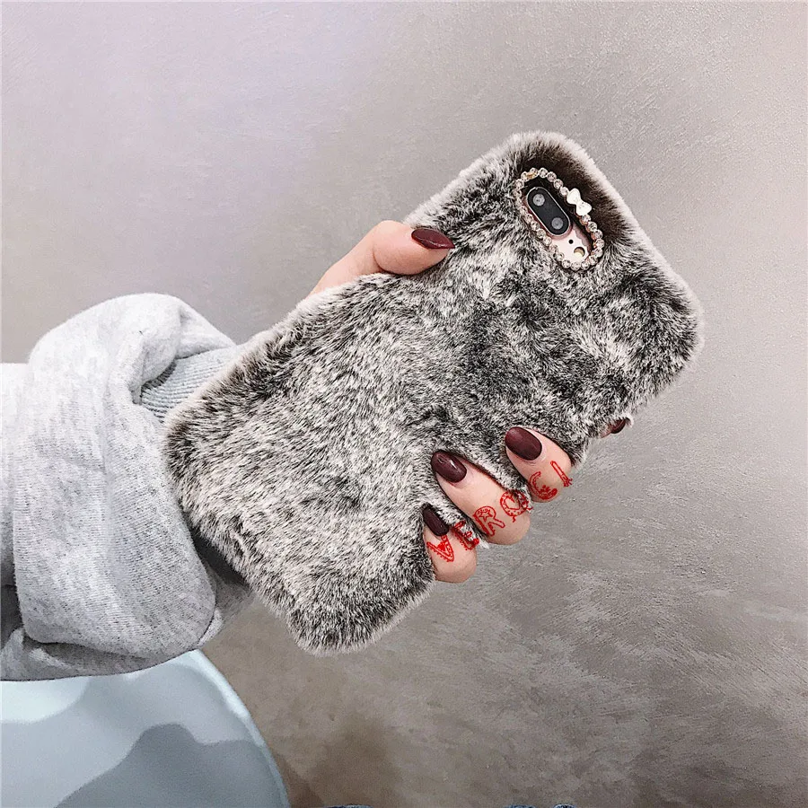 Чехол из меха кролика для Xiaomi Mi CC9 CC9E 9 9T Pro 9 SE Redmi Note 6 7 8 Pro 8T 6A 7A 8A A3 Lite, теплый чехол со стразами