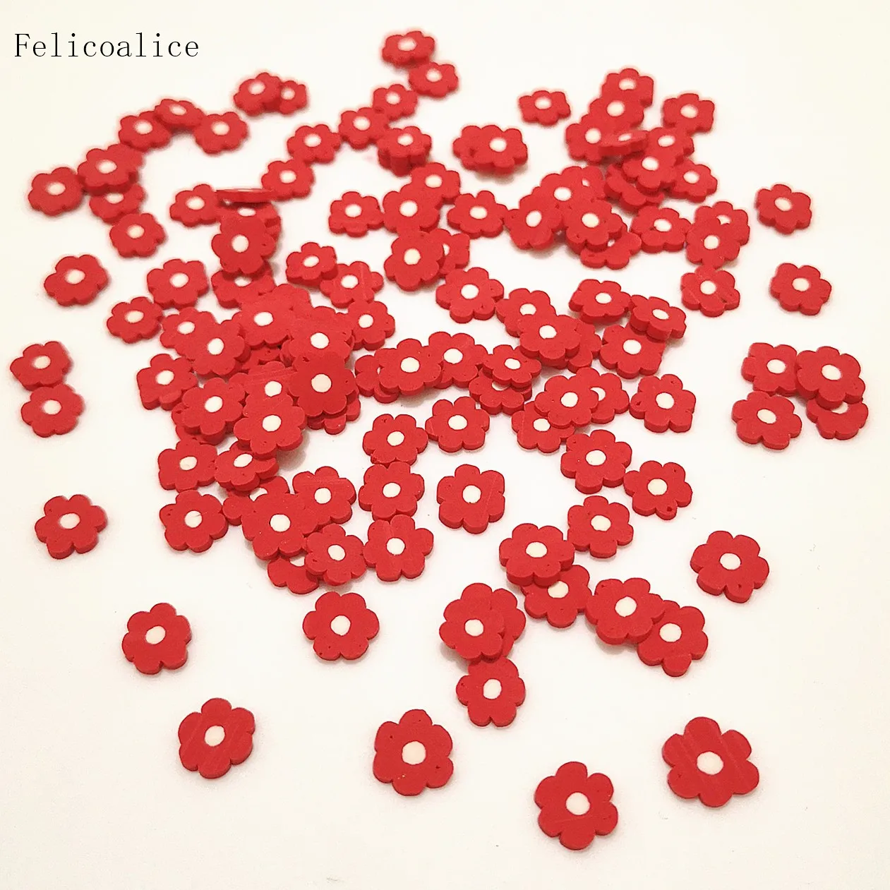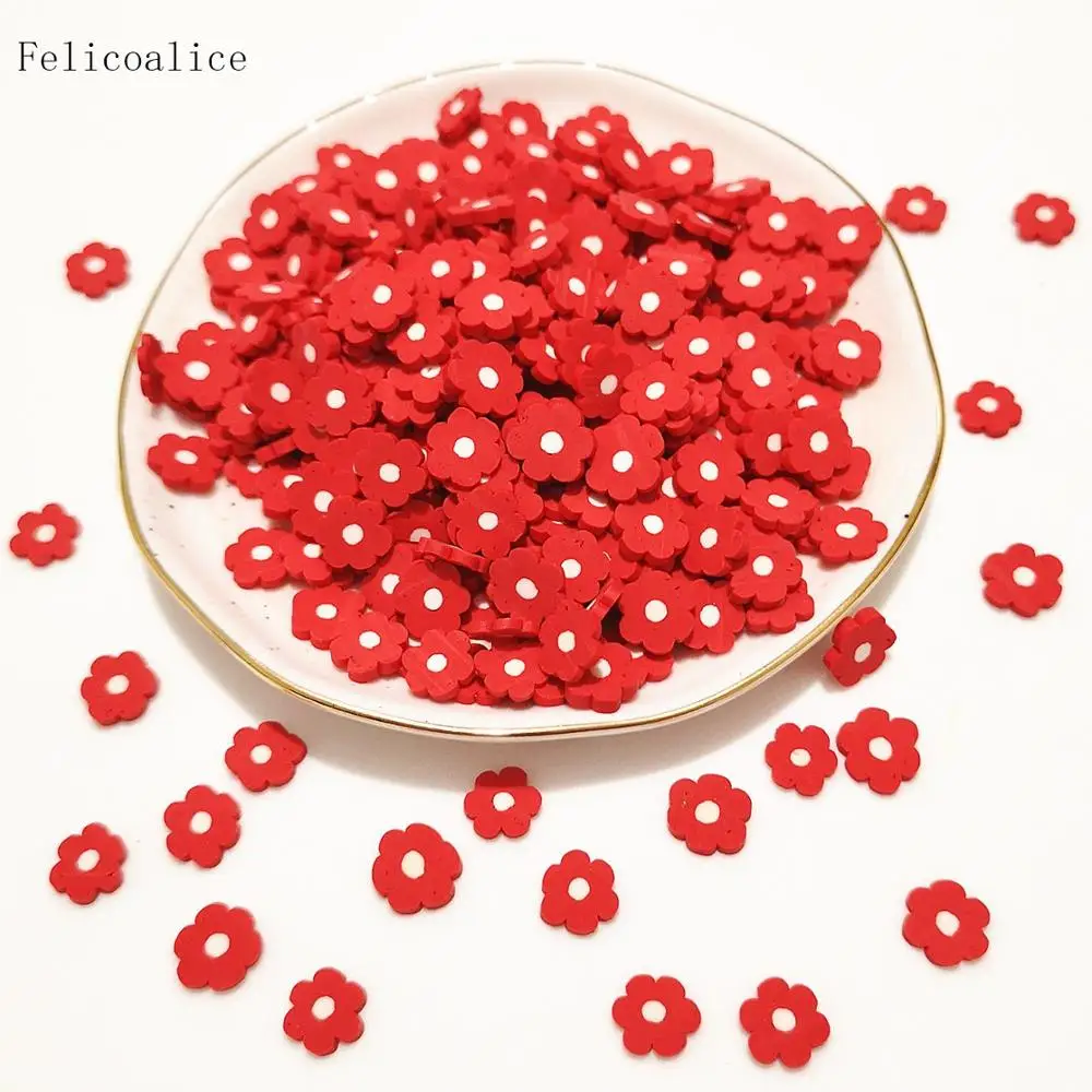 Полимерная глина, 20 г, красные цветы, посыпка, пластиковые крошечн...