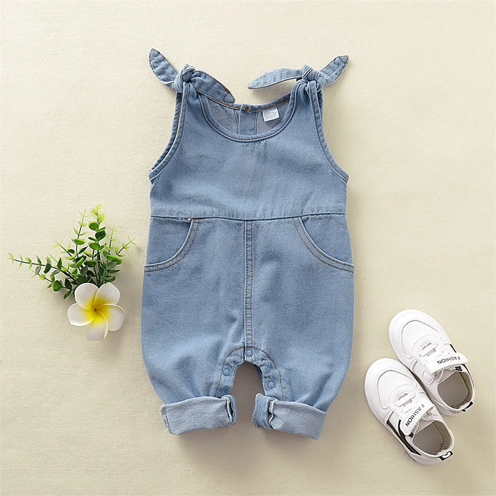 Комбинезон джинсовый для новорожденных, без рукавов, с комбинезоном, однотонный, лето 2020
