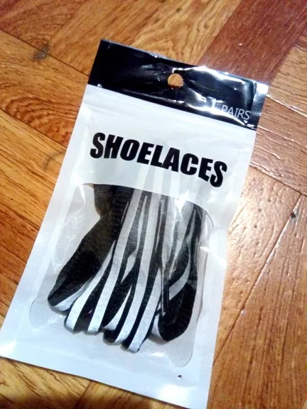Пришло за три недели в объединенке. Как водитель, заметила, что светоотражатели лучше работают , когда они на ногах - хорошо мелькают в свете фар. А без светоотражателей вообще не видно пешеходов, а в 6 вечера уже сумерки. Слежу, чтобы светоотражающие элементы были на одежде и сумках всех членов семьи. Шнурки увидела в группе ВКонтакте Alikinder. Шнурки 120 см подошли впритык на мужские ботинки. светоотражающая лента только с одной стороны, поэтому пришлось зашнуровать так. Светится отлично. Мне кажется скользкие и будут развязываться . На последнем фото наши вещи с светоотражателями - наклейки , термонаклейки, ленты с Алиэкспресс