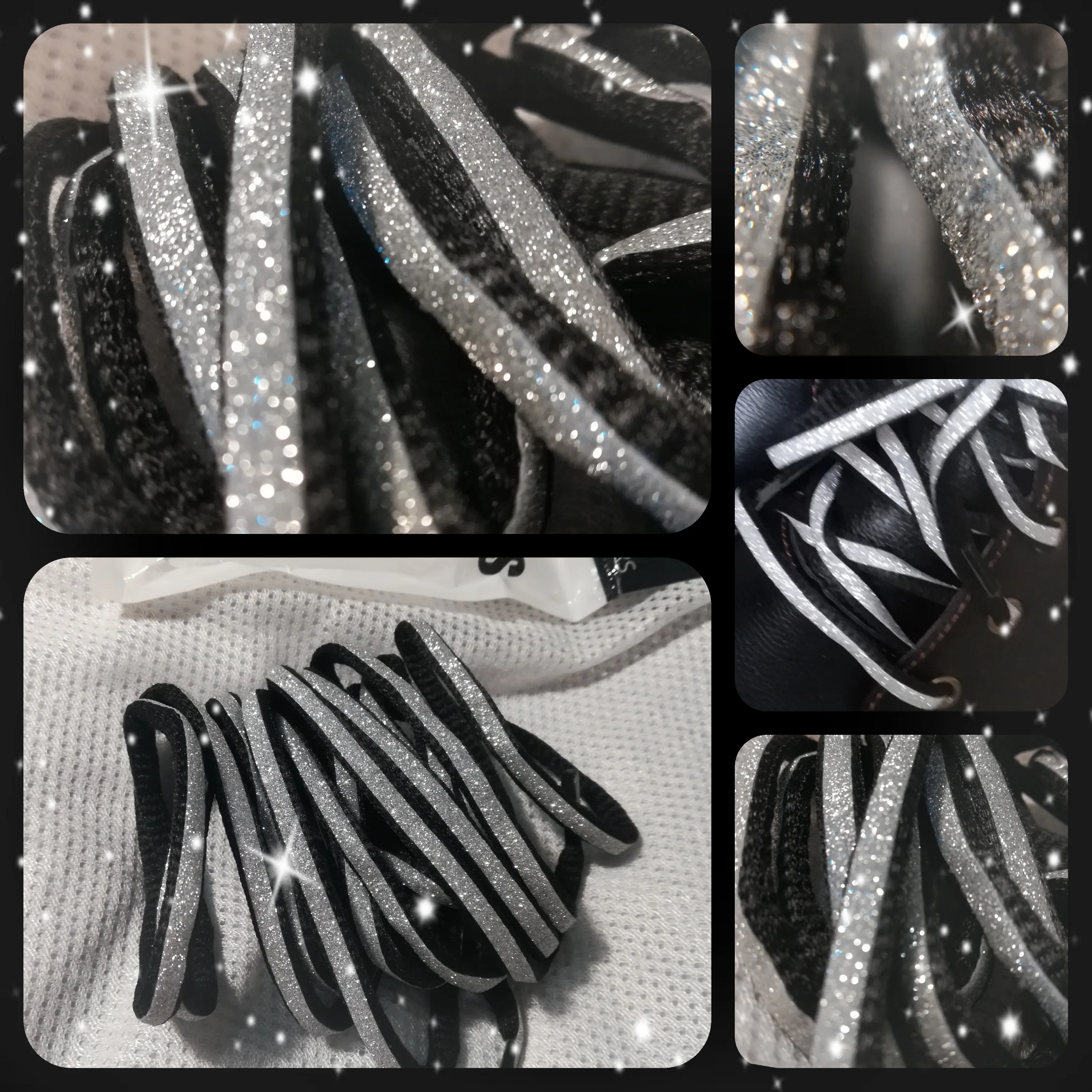 Не могу сказать, что блестят так же, как на фото. Заказывала себе на кроссовки, не особо придирчива к блеску, но шнурочки и в правду не так сверкают. Отправили быстро, с продавцом не общалась. Даже вроде довольна покупкой.