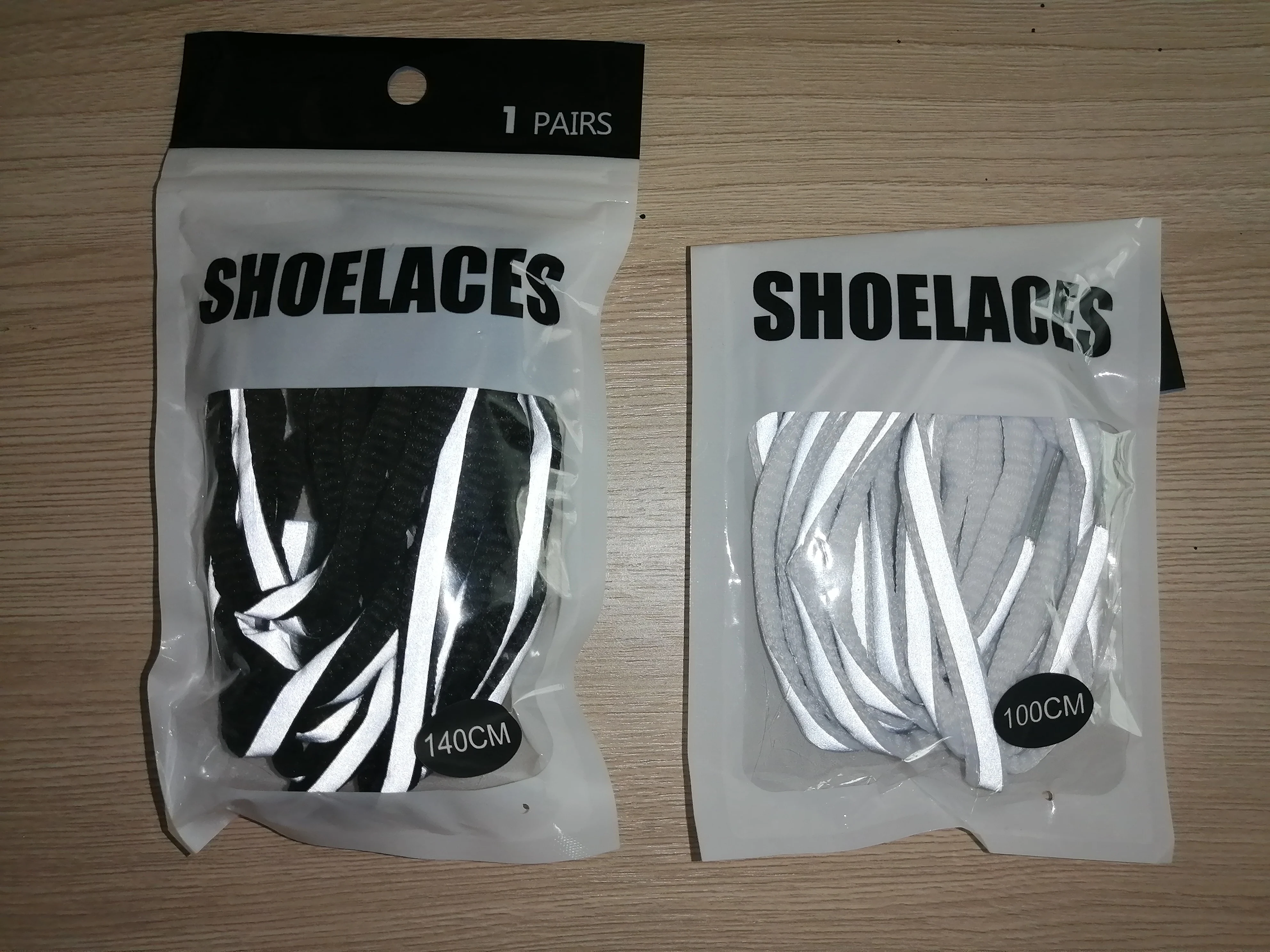 Шнурки пришли за 2 недели. Тонкие в ширину, но действительное светоотражающие.
