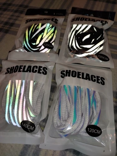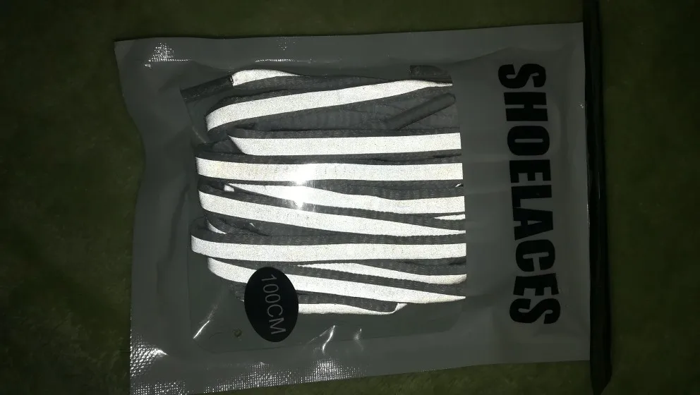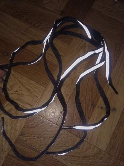 шнурки хорошие, свет отражают. По длине в ботинки подошли. от фотовспышки рядом с ботинками, правда эффекта больше, чем от света фар на улице, смотрятся хорошо, рекомендую!