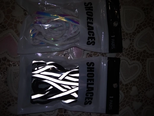 шнурки пришли в пупырчатом пакетике, хорошие прочные шнурки, все как в описании и на картинке, на фото светятся от вспышки телефона, все работает пахнут новым продуктом, лишнего запаха нет, все просто отлично, рекомендую однозначно