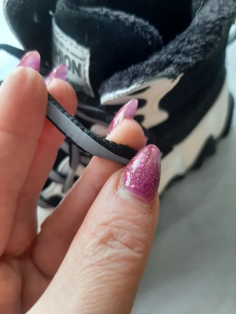 шнурки классные, свет отражают, жаль сфотографировать это не получилось