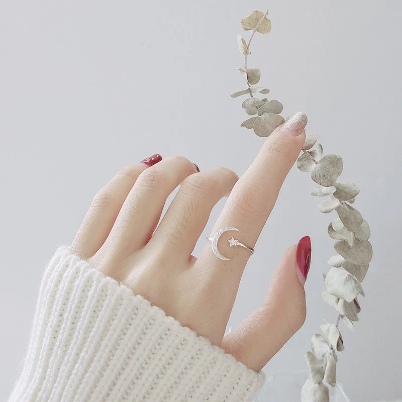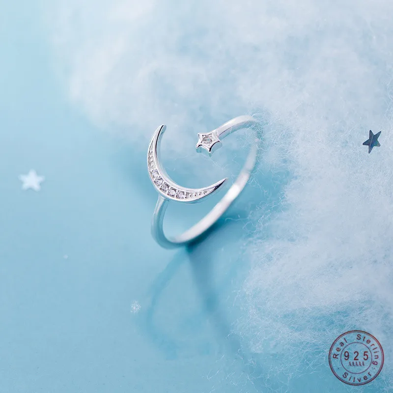 Женское Открытое кольцо из серебра 100% пробы, с Луной и звездой, D...