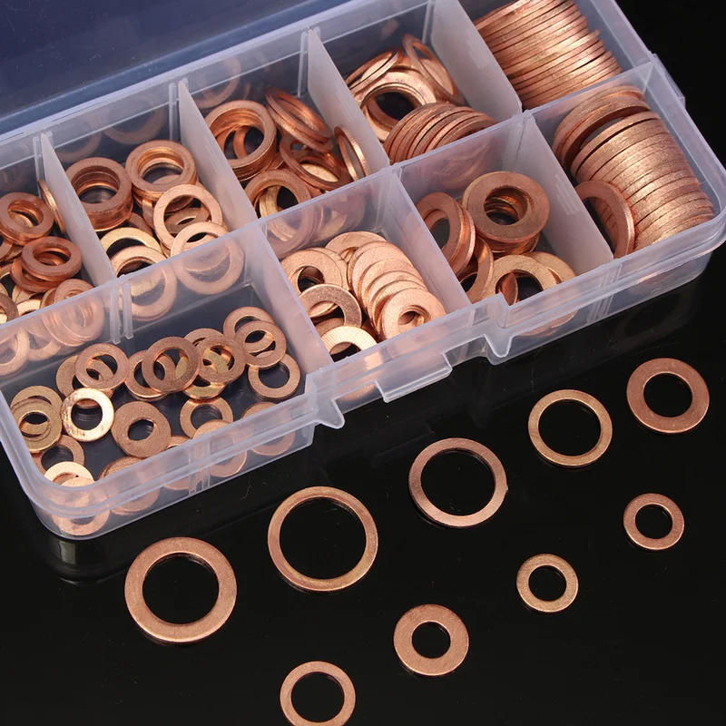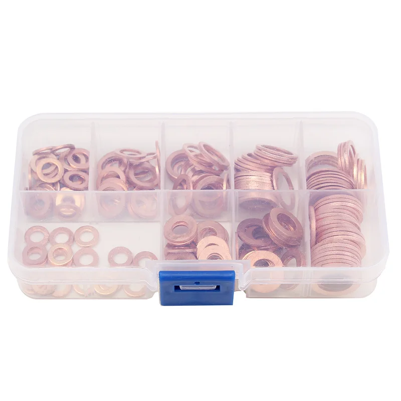 200 шт Набор прокладок для шайбы из твердой меди, плоское кольцо, заглушка, сальник, фитинги, шайбы, крепежные детали, аксессуары M5-M14