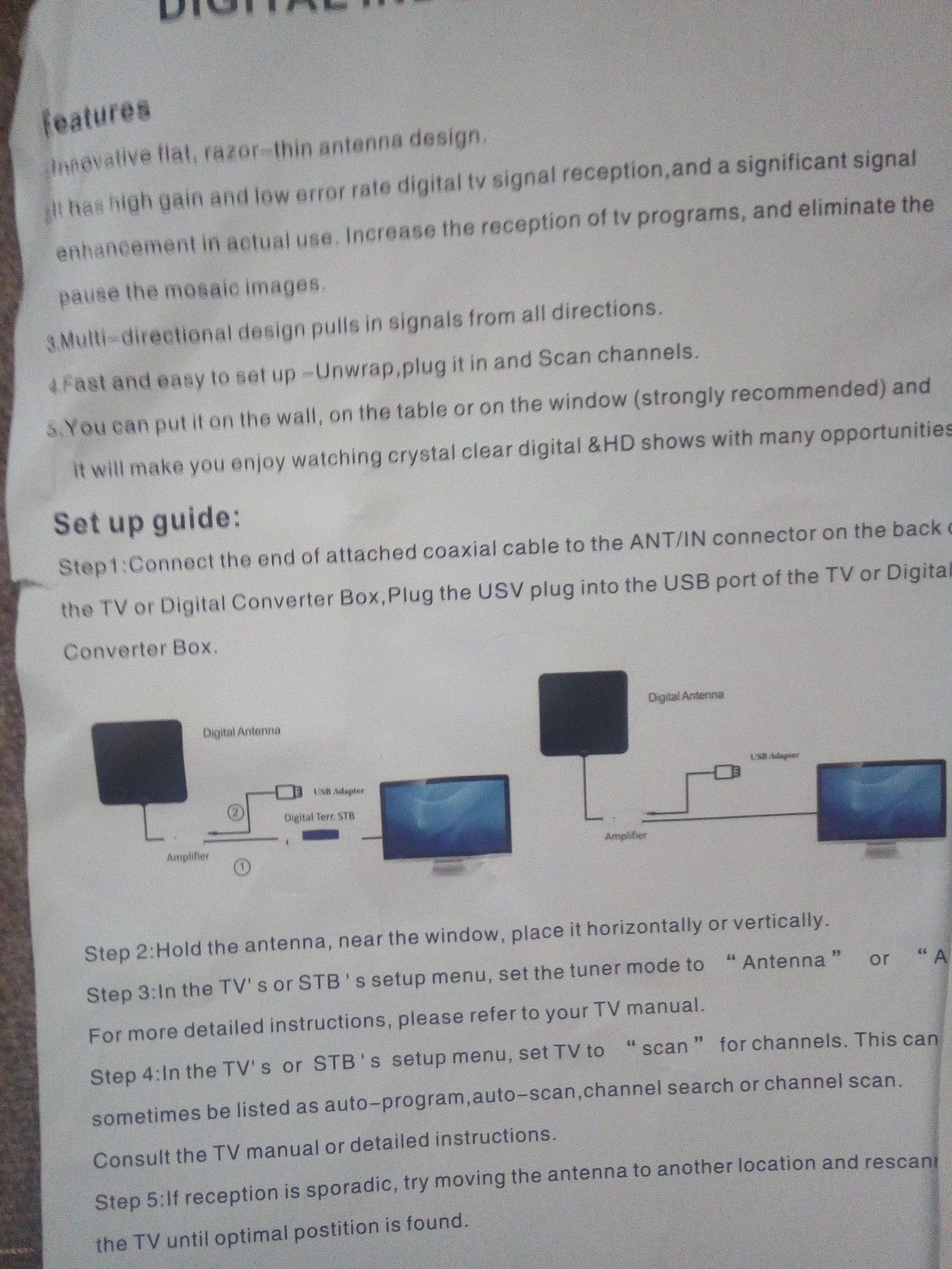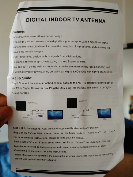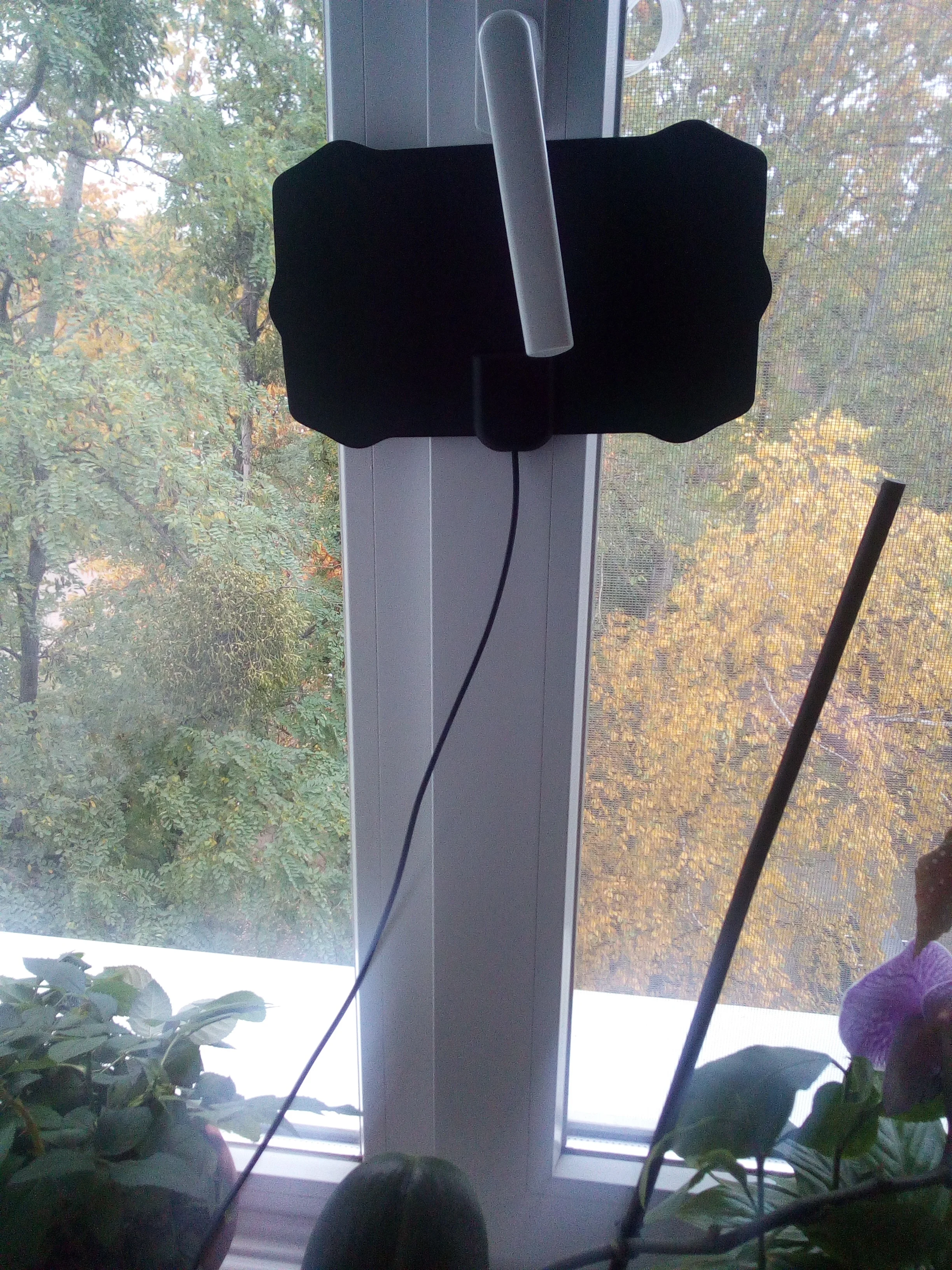 антенна хорошая, живём за городом, обычная комнатная ловила, но через раз, когда ветер или дождь, сигнал терялся. А эта антенна имеет уверенный приём, ни одной потери и зависания, сначала подключил с усилителем, потом решил убрать его. И даже без усилителя все работает отлично! антенна маленькая и лёгкая, прилепил прям за телевизором .