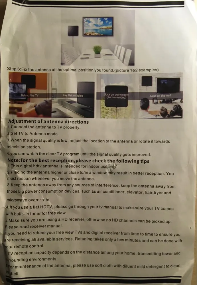 Доставка до Москвы примерно 12 дней. Установлена антенна на 16 этаже, на окне, препятствий никаких нет. На картинке показано что скотч идёт по углам антенны, по факту только в основании, куда заходит провод. При поиске каналов - 30 цифровых и 3 радио, но на большинстве каналов ,- картинка сыпется ( если подключать без усилителя). При подключении усилителя,- находит примерно 20 цифровых каналов и 3 радио, но картинка сыпется на каждом из каналов. Покупал 2 шт. Одну в город, что бы не тащить кабель из другой комнаты, вторую для дачи (пока не проверял). С продавцом не общался.