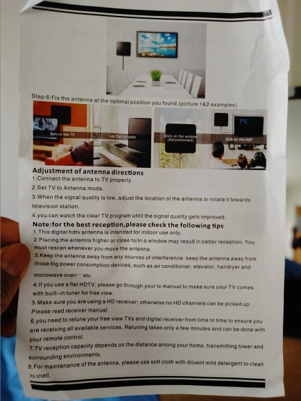 Быстрая доставка, отличный приём в городе, повесил даже за телевизором, всё работает - супер!! 20 каналов без искажений, бликов и тормозов! До этого намучился с рогаткой, ловила только более/менее 10 каналов стабильно!! Единственный минус упаковка была повреждена и остались царапины, но результат и качество картинки радует, поэтому 5⭐