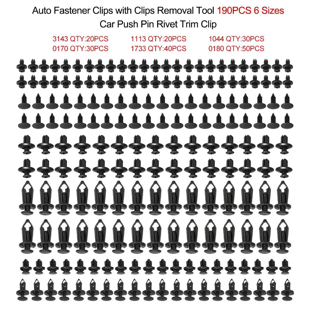 Универсальные автомобильные крепежные зажимы , Пластиковые Крепежные заклепки, зажимы 190 шт ., 6 размеров , автомобильные нажимные булавки, заклепки, декоративные зажимы, крепежные зажимы