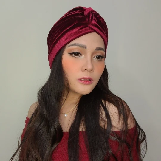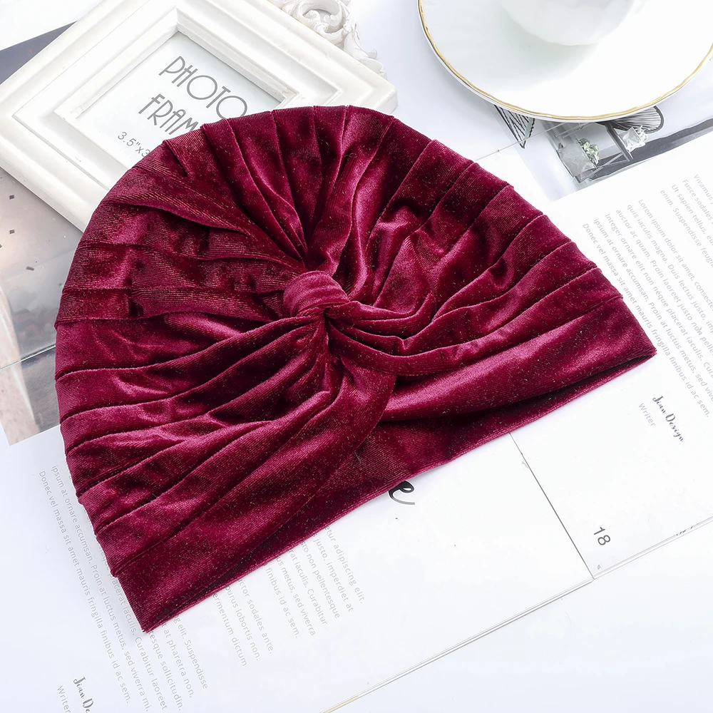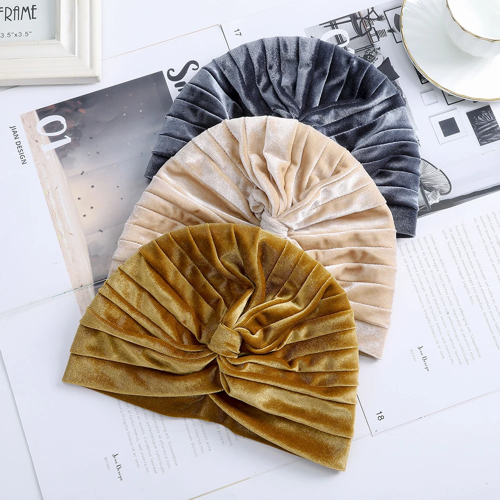 Шляпа-тюрбан женская из бархата и ткани, сложенная, для химиотерапии