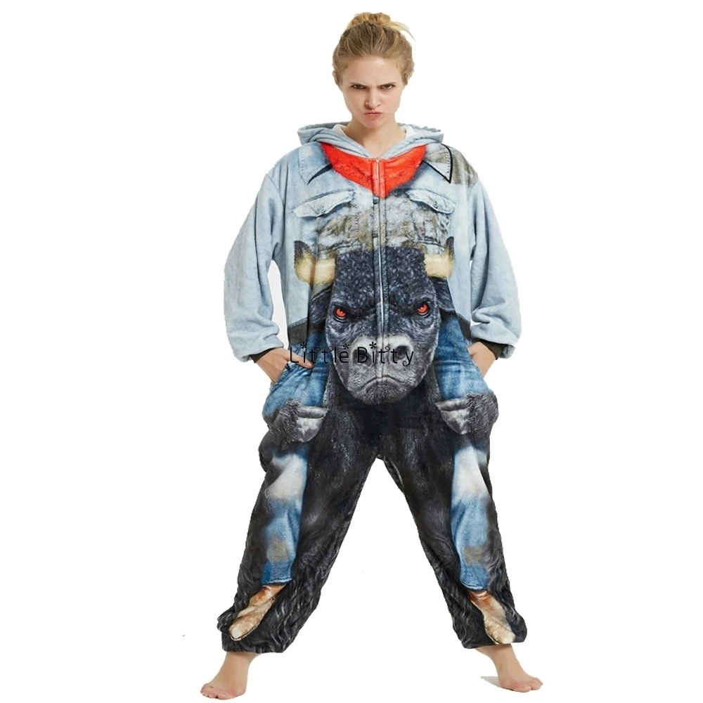 3D животное, носорог, пижама кигуруми, цельный комбинезон с капюшон...