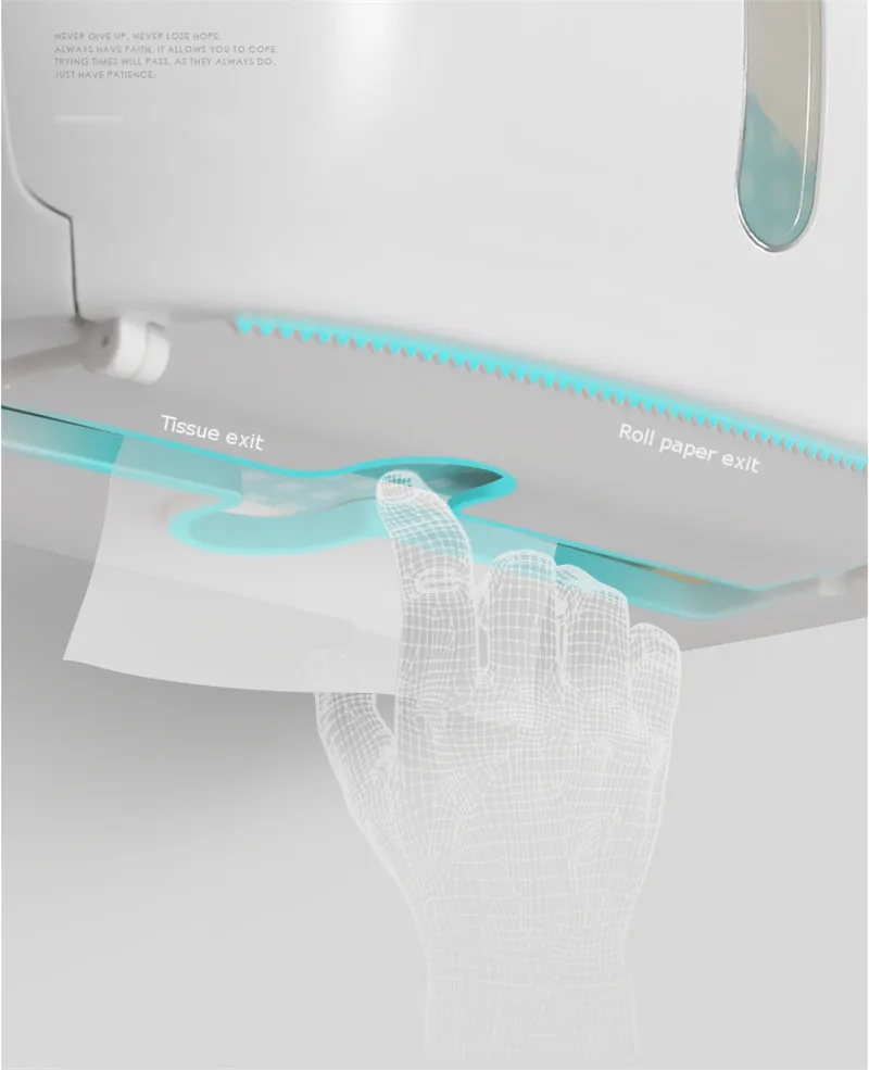 Особенности: 1. Водонепроницаемый и брызгозащищенный, защищает ткань от влаги. 2. С нарисованными пластиковыми мешками, Гигиеническими Прокладками и т. Д. 3. Держатель телефона, может хорошо разместить телефон и планшет. 4. Верхний Orangzier с отверстием для слива, сохраняет верх сухим и чистым. 5. Полуавтоматический переключатель, удобный для замены ткани. 6. Разный выход для рулонной ткани и съемной ткани. 7. Режущая кромка, специально разработанная для Резки Рулонной ткани. 8. Легко установить, без сверления.