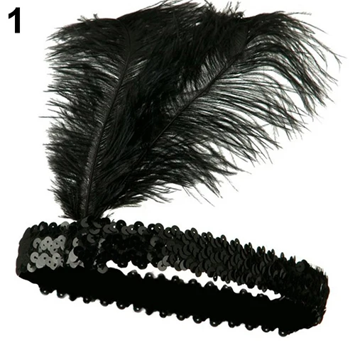Женская винтажная повязка на голову, черная повязка на голову в стиле 1920-х, украшенная бусинами и стразами, аксессуар для волос