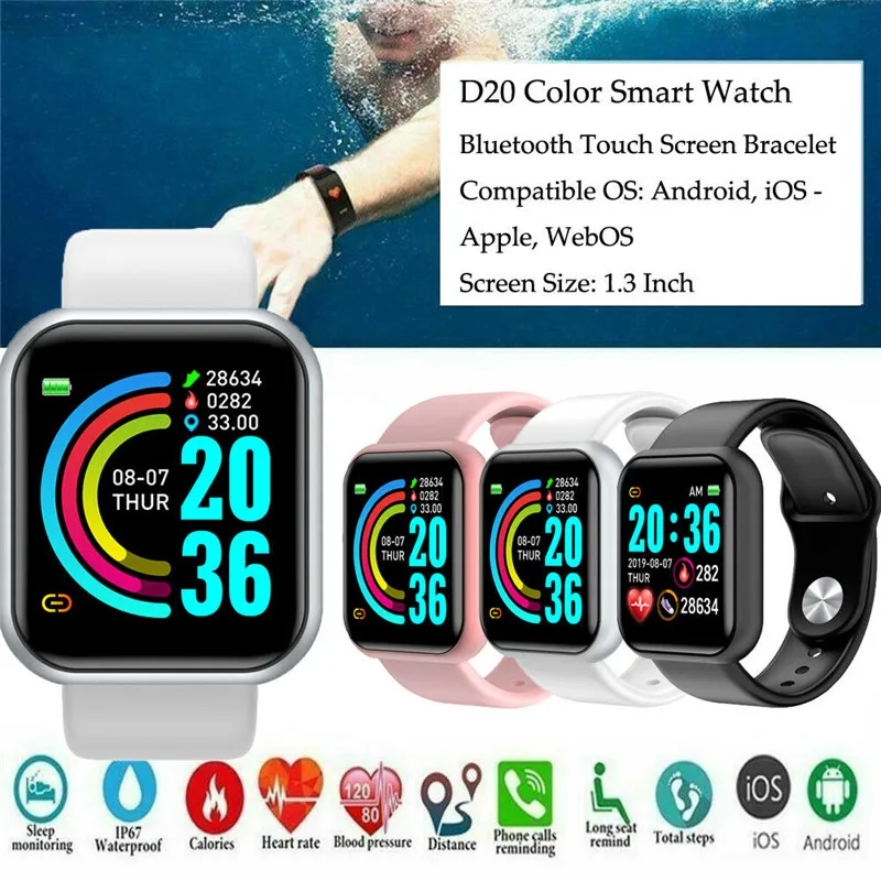 Умные часы D20 для мужчин и женщин, модные спортивные часы с Blueto...