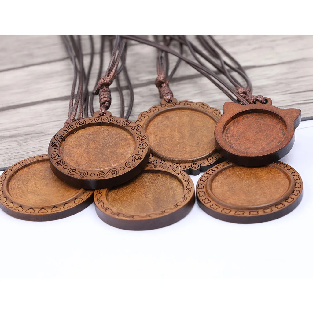 Подвески из дерева с круглым кабошоном, подвески сделай сам из кожаного шнура, ожерелья, зажимы для ювелирных изделий, 2 шт., 25 мм, 30 мм