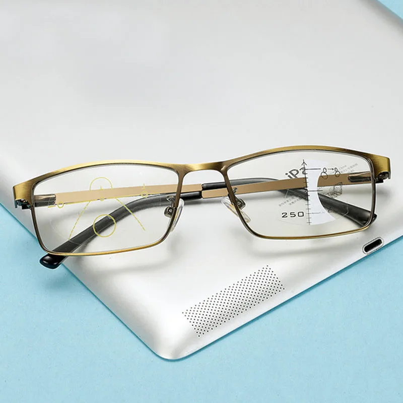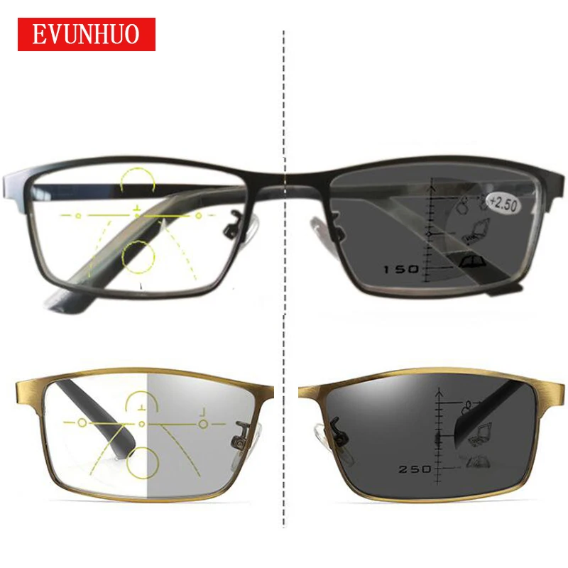 Очки для чтения мужские многофокальные, металлическая фотохромная квадратная оправа с защитой от синего светильник при пресбиопии, золотистые