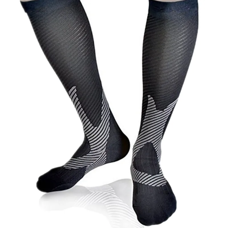 Горячая унисекс компрессионные чулки под давлением нейлон варикозное расширение вены чулки гольфы поддержка растягивания под давлением носки