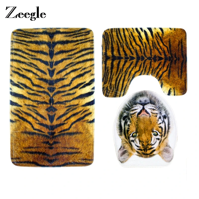 Zeegle Tiger с рисунком, Нескользящие, коврик для туалета, коврик для ванной, фланелевый коврик для туалета, три набора ковриков для ванной, коврик, поглощающий воду