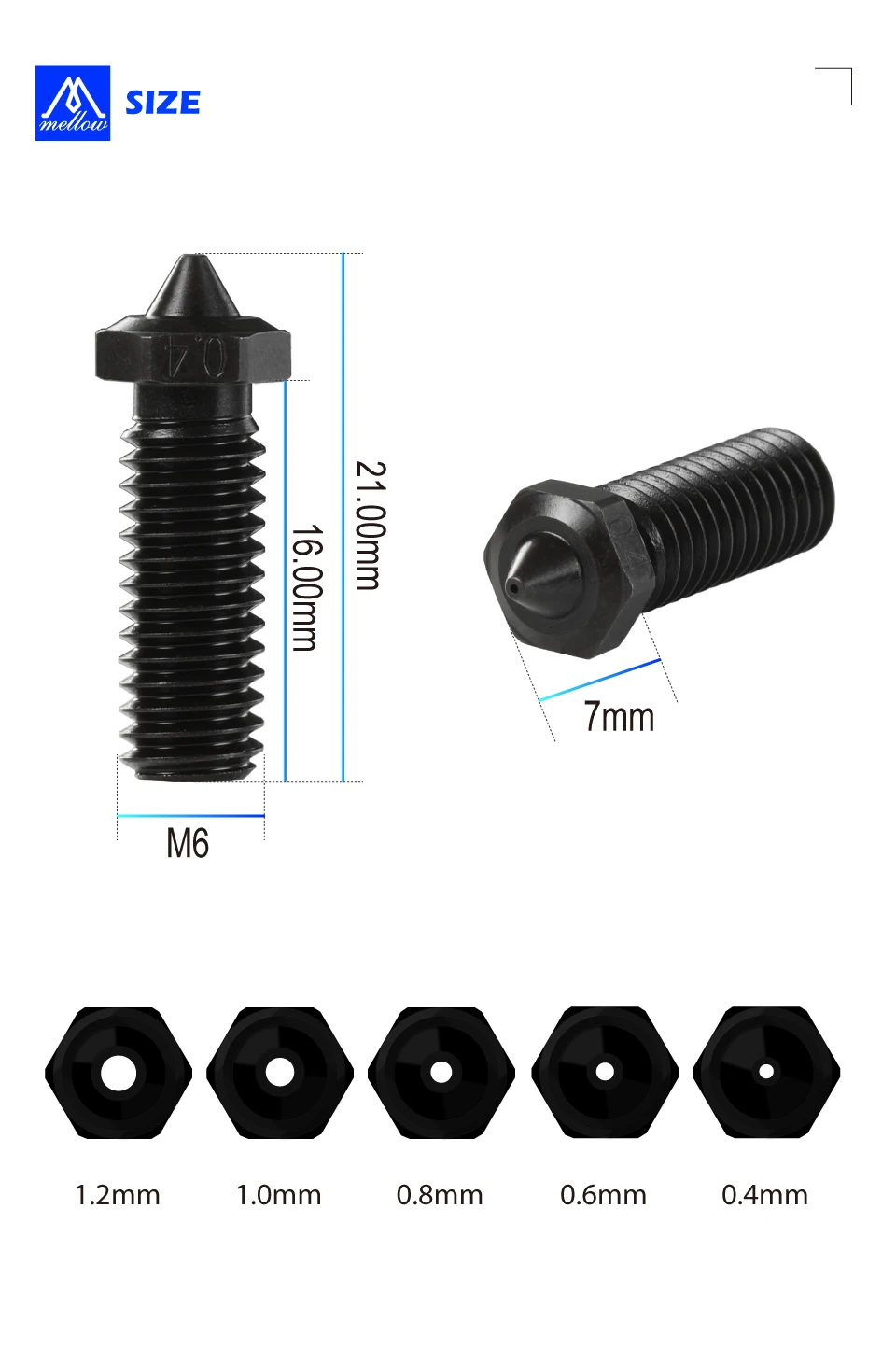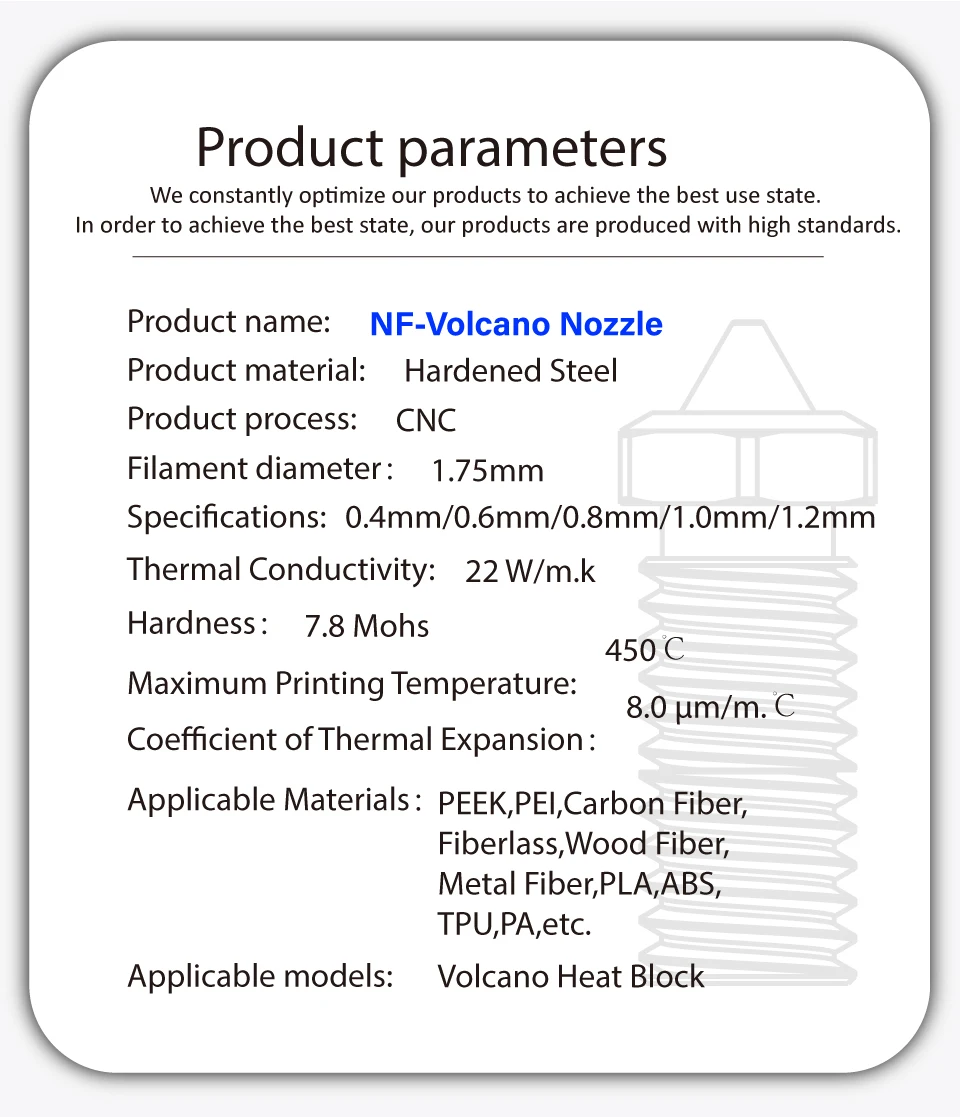 Mellow 1 шт. NF закаленная сталь острый сопло вулкана для высокой температуры V6 вулкан Hotend J-head 3D Priter детали