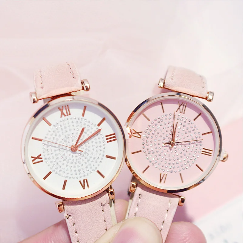 Часы наручные женские кварцевые, Модный комплект из браслета, с кожаным ремешком, с изображением звёздного неба