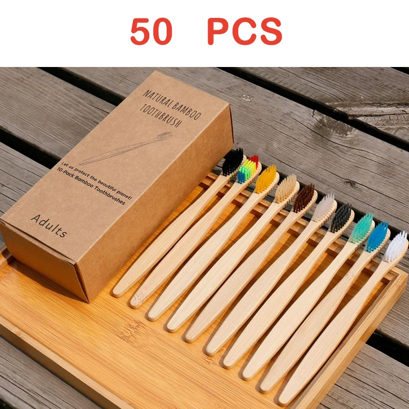 102050 шт Смешанные Цвет бамбук Зубная щётка Экологичные деревянные зубная щетка зубные щетки с мягкой щетиной для жениха наконечник уголь взрослых Уход за полостью рта Зубная щётка