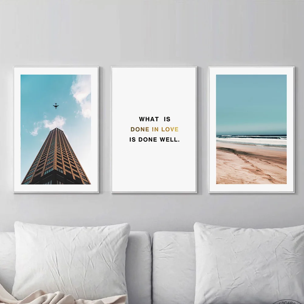 Настенная Картина на холсте с изображением голубого неба самолета здания морского берега скандинавские плакаты и принты настенные картины для гостиной домашний декор