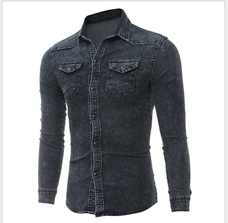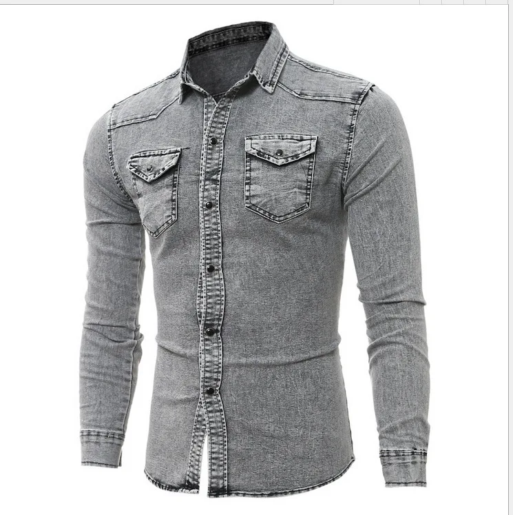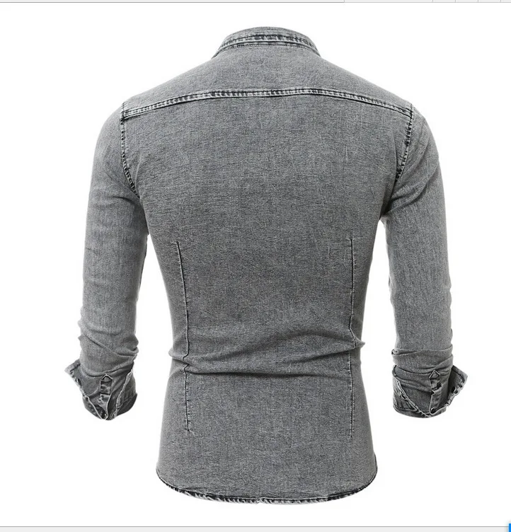 Рубашка мужская джинсовая с длинным рукавом, Модная приталенная стильная серая моющийся Ковбой из 2020 хлопка, топ из денима, размера плюс M-3XL