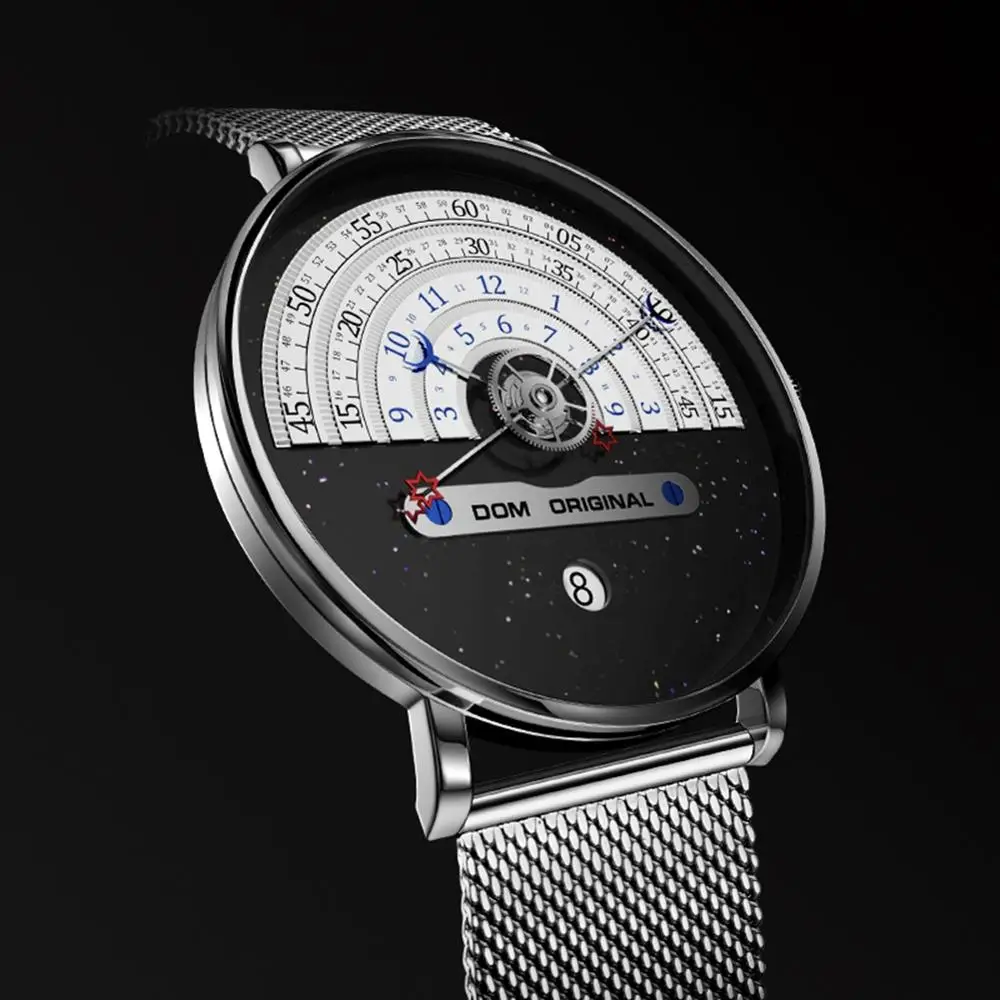 DOM оригинальные 2020 Самые креативные тактические уникальные часы для чтения, дизайнерские мужские часы, повседневные мужские кварцевые часы