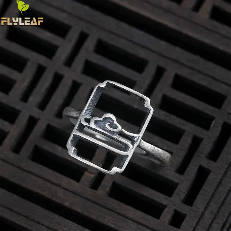 Кольца Flyleaf в китайском ретро-стиле женские, открытые Винтажные Украшения ручной работы из стерлингового серебра 100% пробы