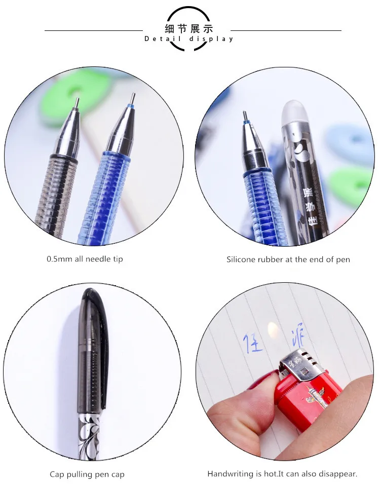 Набор стираемых шариковых ручек, черные и синие Черные чернила для ...