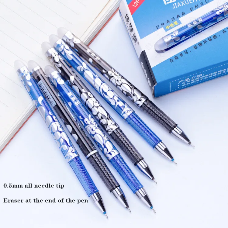 Набор стираемых шариковых ручек, ручки с синими и черными чернилами, 12 шт., Канцтовары для школы и офиса