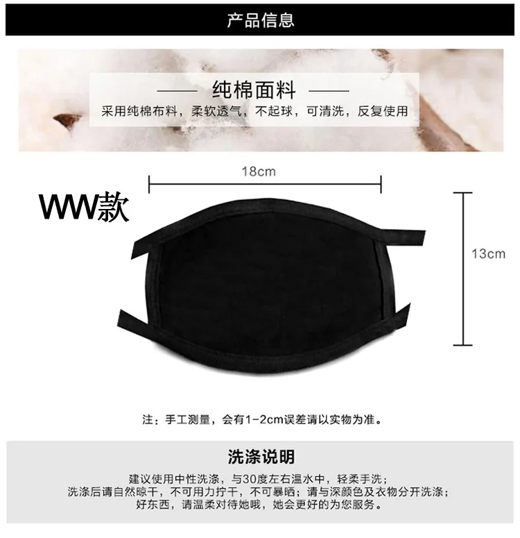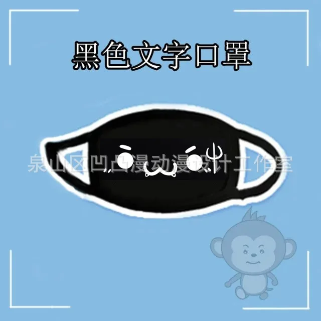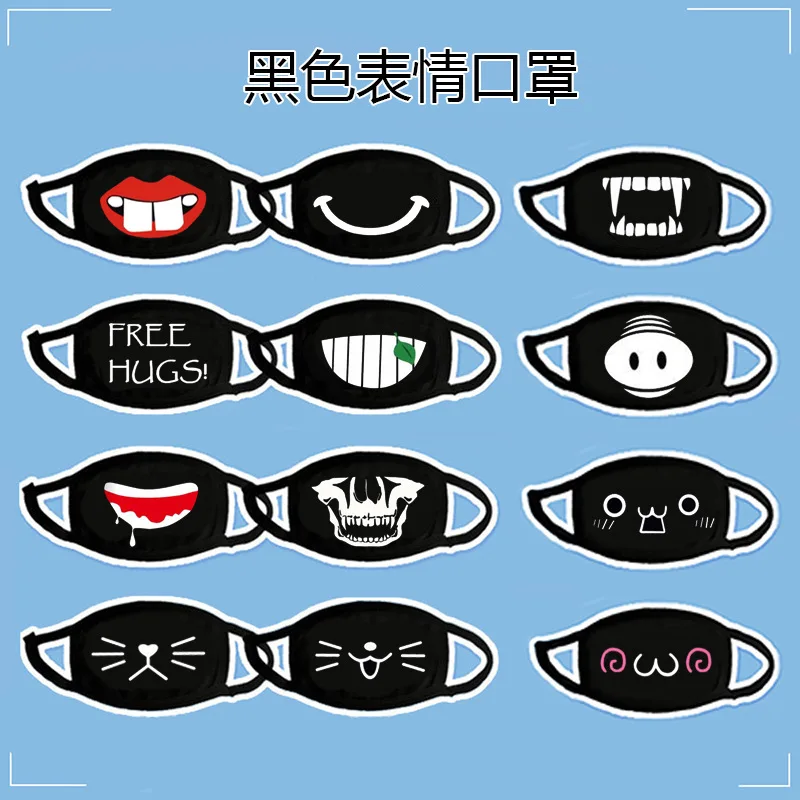 Мультяшная модная многоразовая маска для рта из хлопчатобумажной ткани с мультипликационным аниме, маска для лица против пыли, моющаяся черная маска на лицо для взрослых