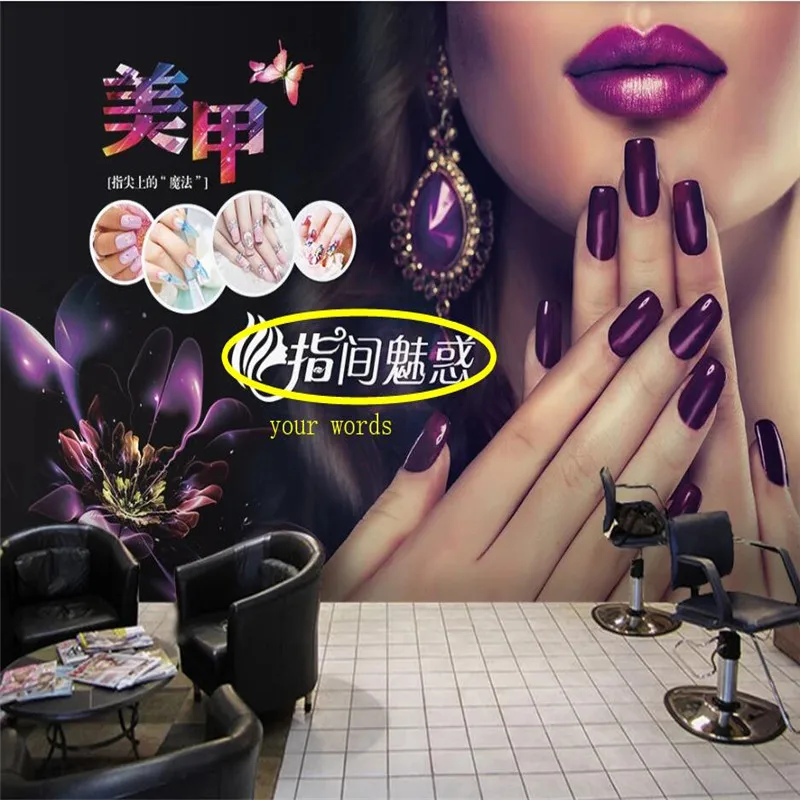 Модный дизайн ногтей, салон красоты, магазин косметики, промышленный декор, фон, настенная бумага 3D, индивидуальная 3D Бумага