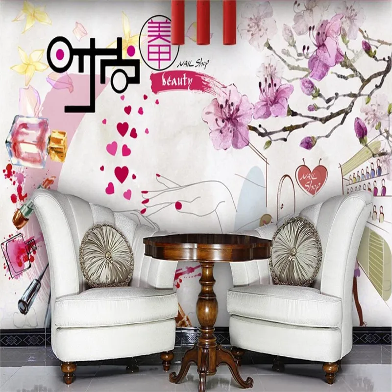 Мода ручная роспись косметика для ногтей магазин индустриальный Декор фон росписи обоев 3D современный салон красоты настенная бумага 3D