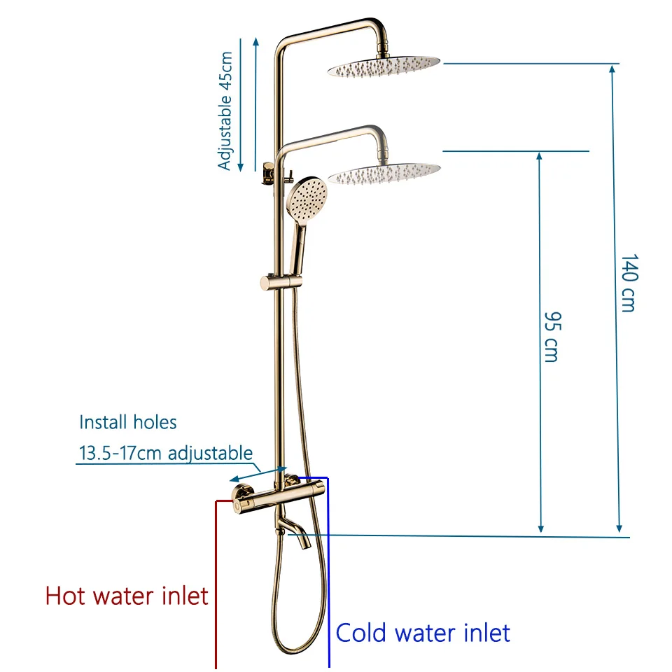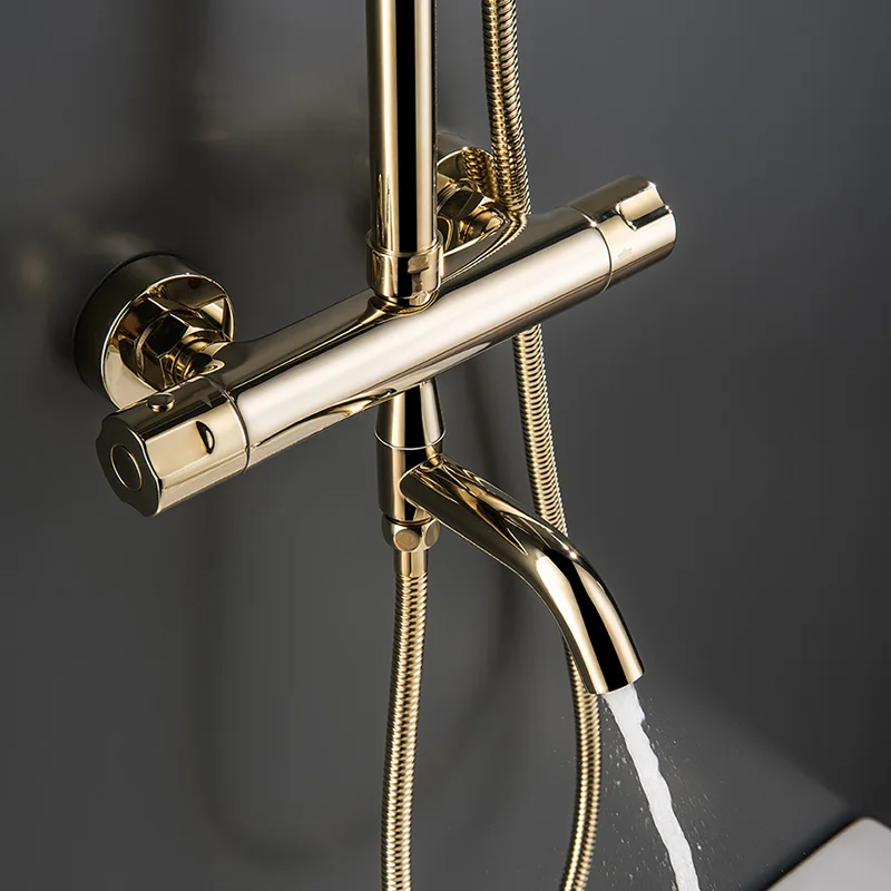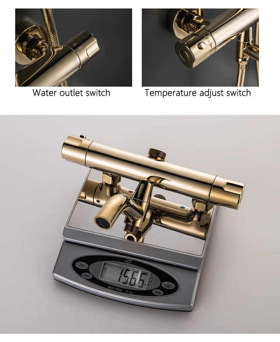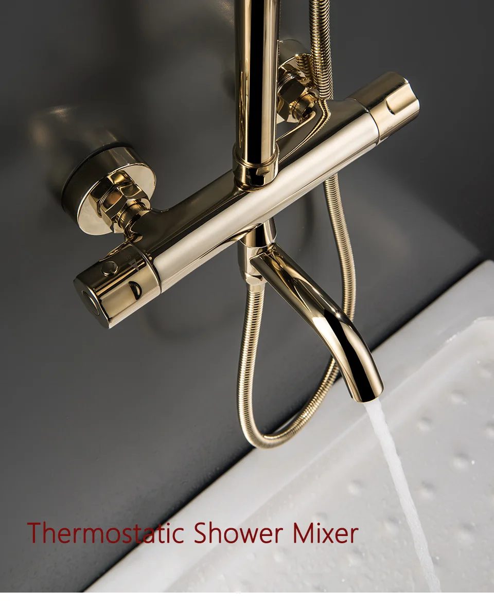 Роскошный Золотой душевой набор Термостатический смеситель для душа для ванной комнаты 3 способа металлическая Лейка для душа настенный Золотой смеситель для ванны