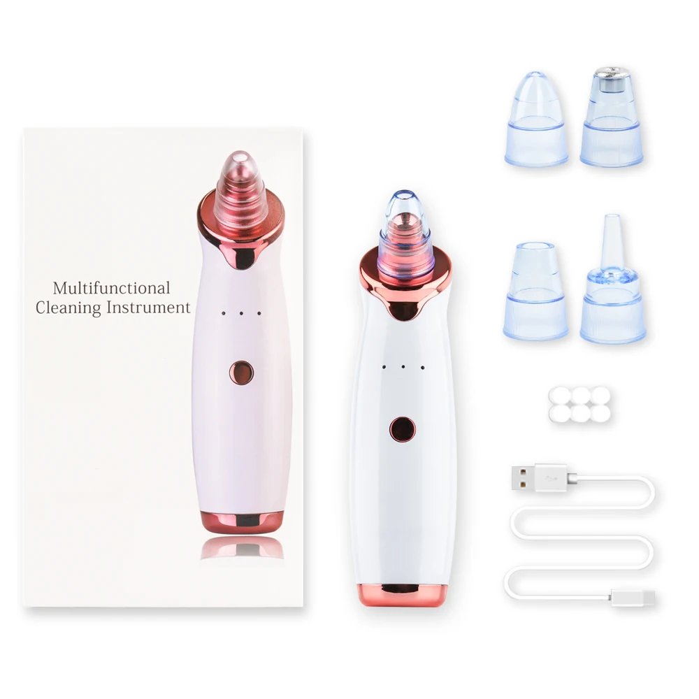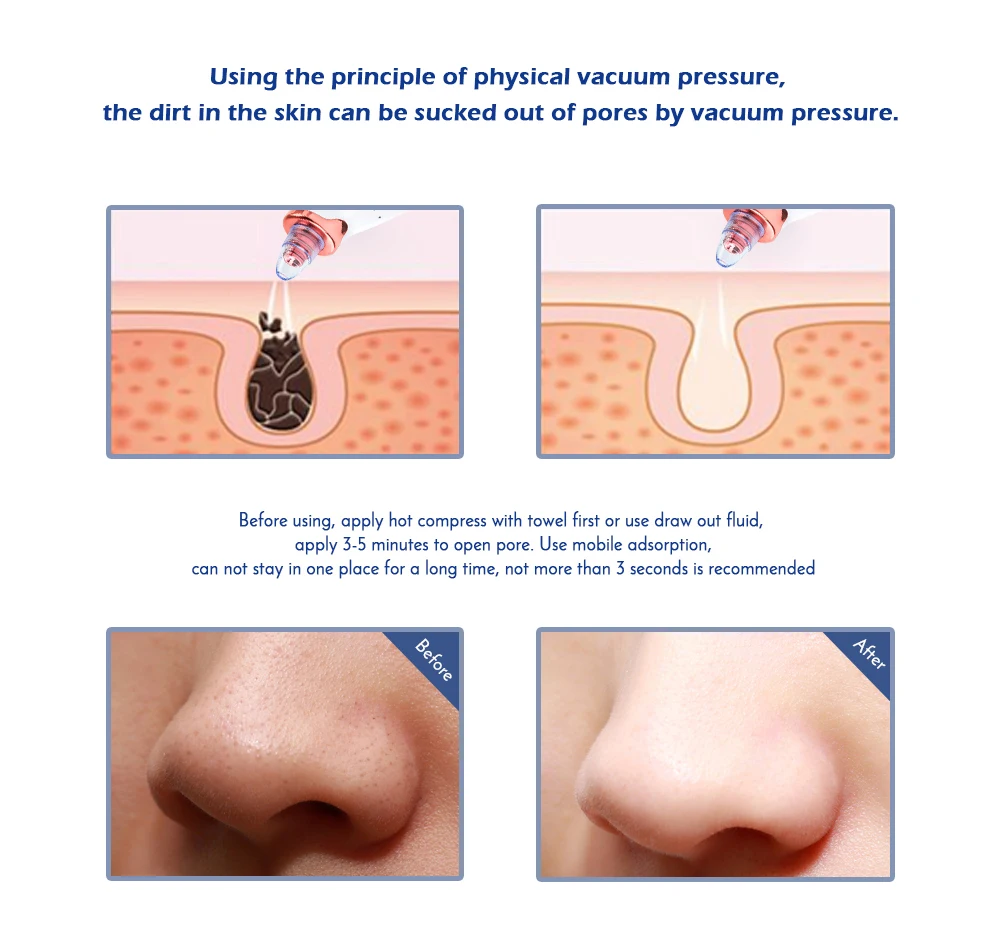 Сильное всасывание, сила всасывания регулируется, эффективно высасывает черные точки из носа и акне.Мощность всасывания больше, чем у традиционной машины для всасывания черных точек.