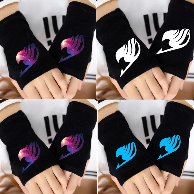 Черные аниме перчатки теплые зимние перчатки с хвостом мужские трикотажные перчатки без пальцев в стиле стимпанк мультфильмы косплей костюм аксессуары