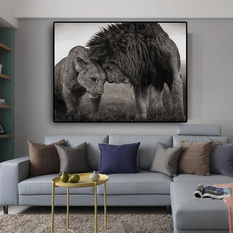 Черный и белый Африканский Лев холст настенные картины художественн...