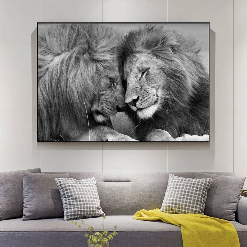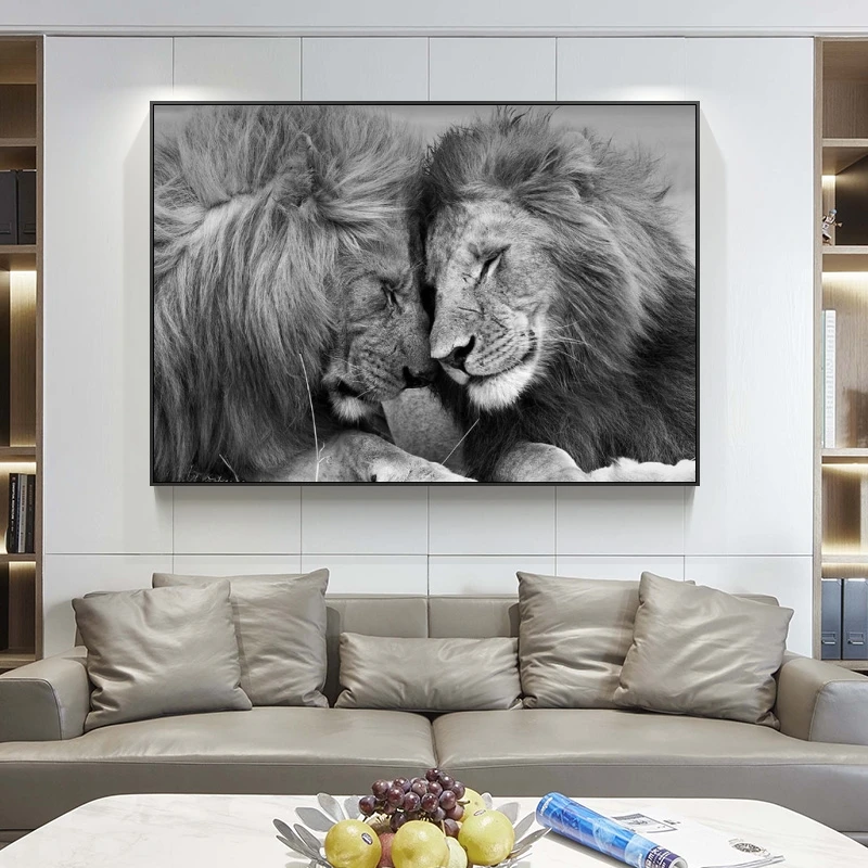 Настенная картина с изображением Льва с головой к голове, черно-бел...