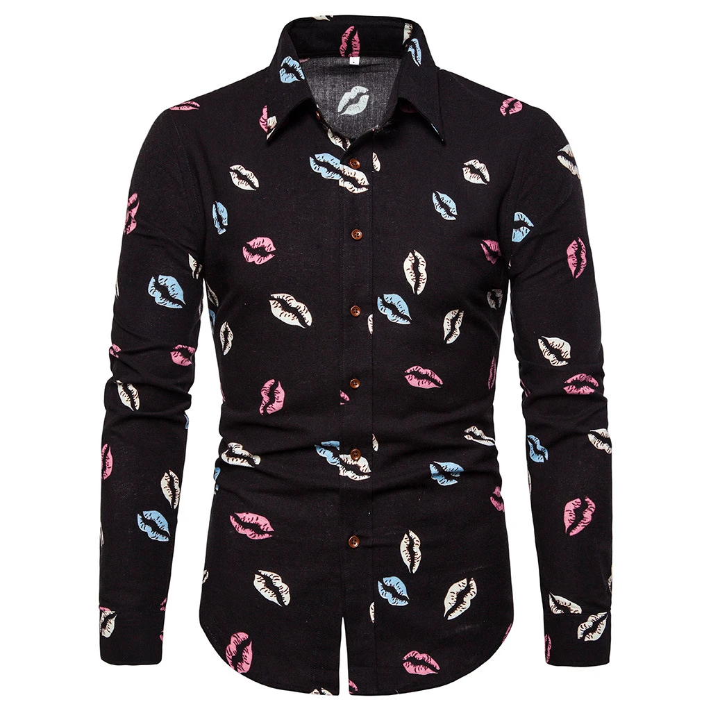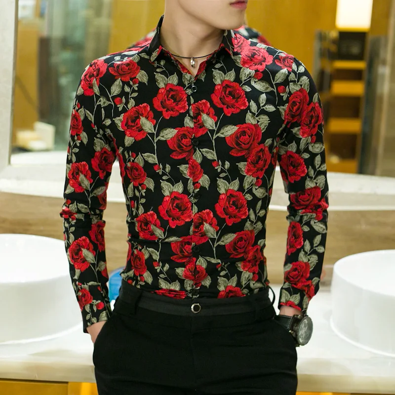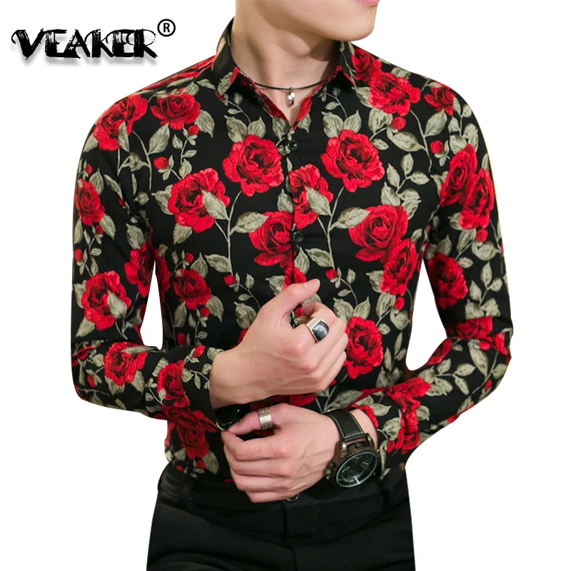 Рубашка мужская с цветочным 3D принтом, Повседневная Модная приталенная рубашка с длинным рукавом и отложным воротником, пикантная одежда 3XL