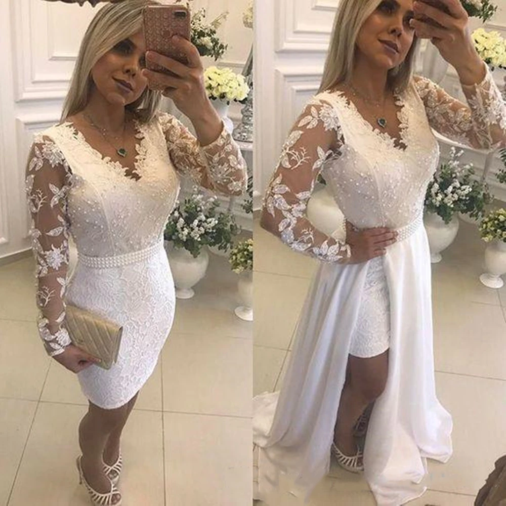 2021 белое короткое свадебное платье для невесты, сексуальное жемчу...