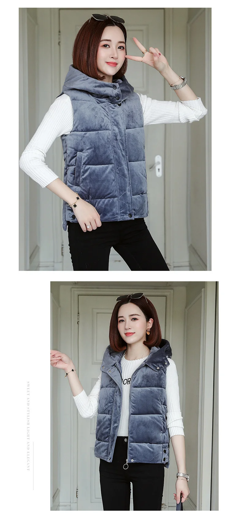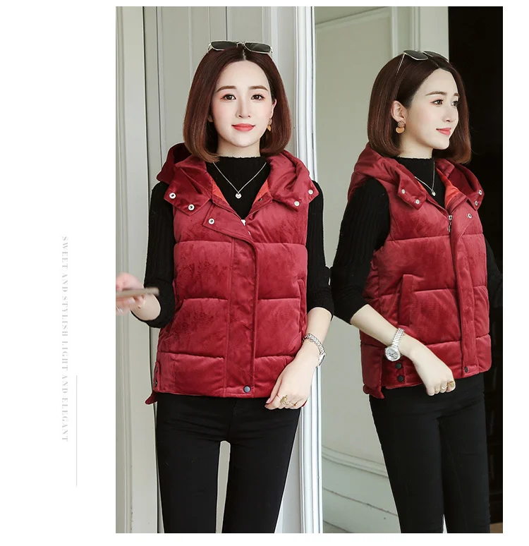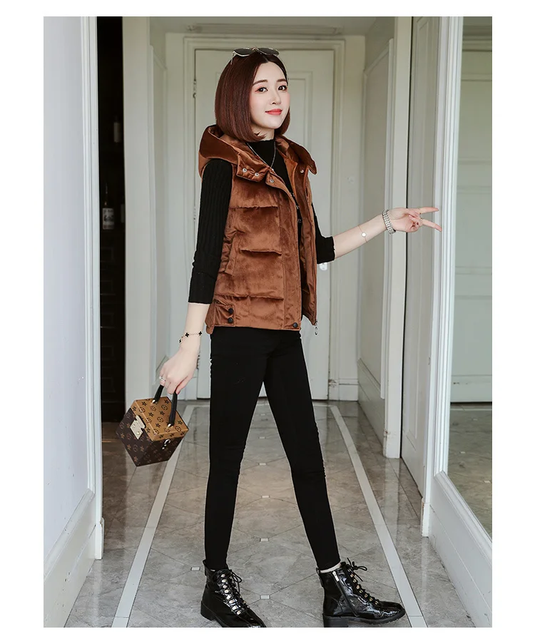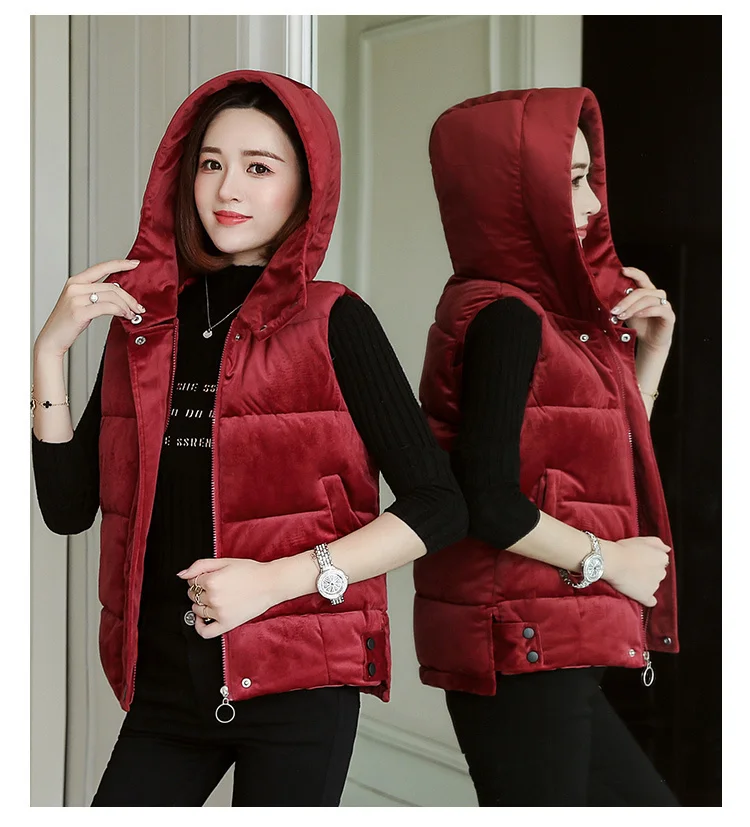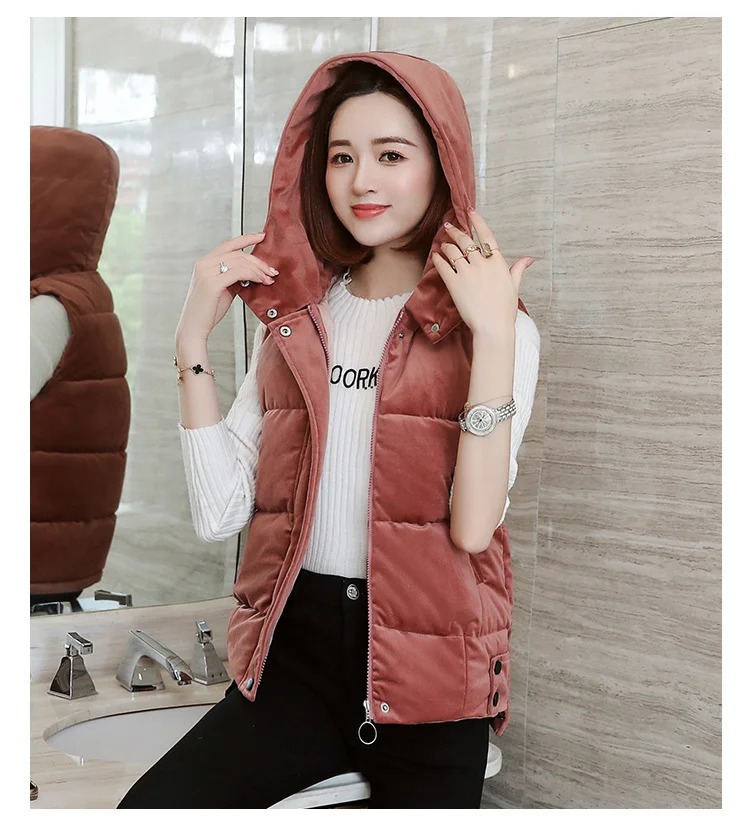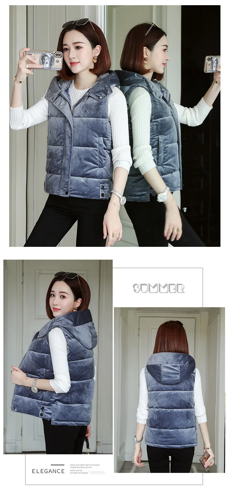 Женский Повседневный Осенний жилет, приталенная женская зимняя однотонная куртка, термо-хлопковый жилет с капюшоном, Женская размера плюс