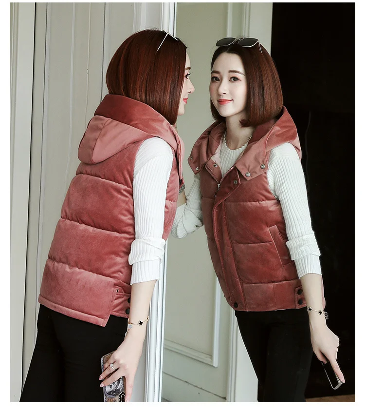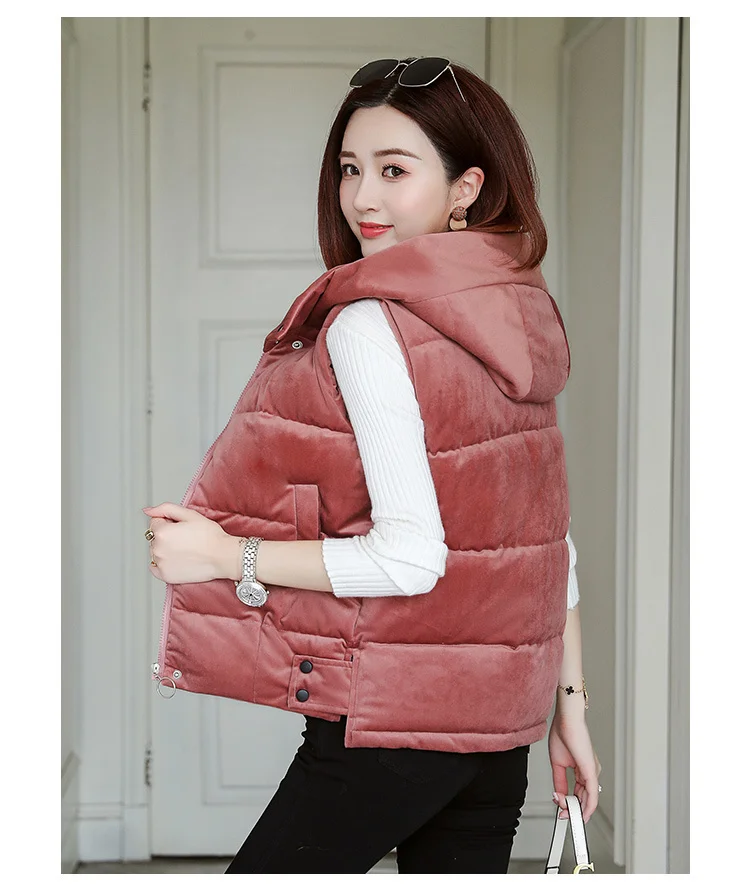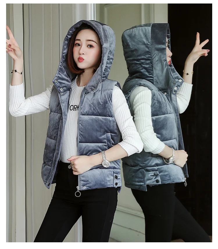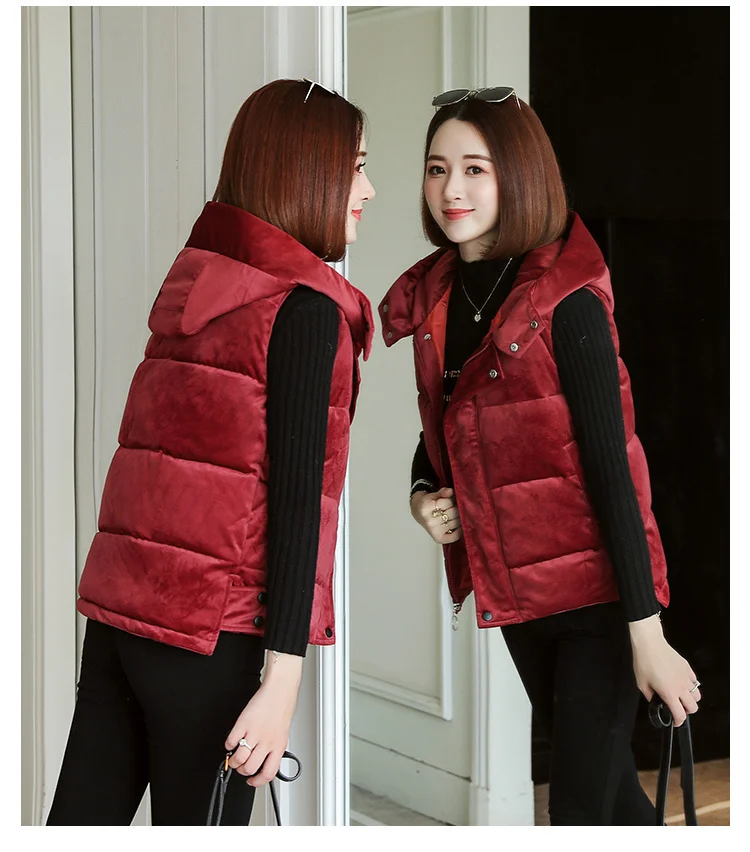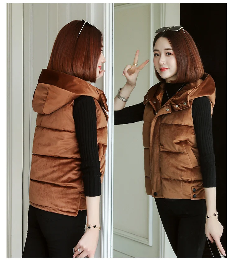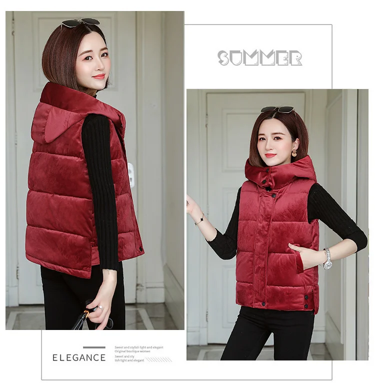Женский Повседневный Осенний жилет, приталенная женская зимняя однотонная куртка, термо-хлопковый жилет с капюшоном, Женская размера плюс