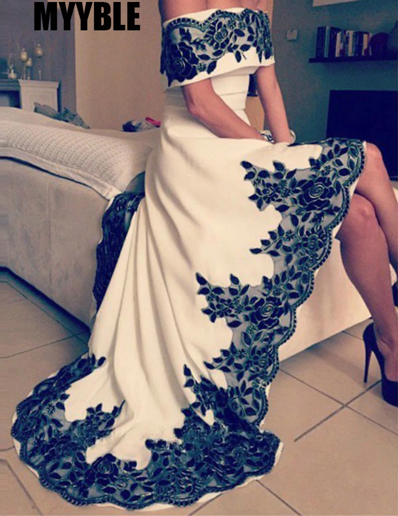 Белое и черное кружевное свадебное платье MYYBLE с аппликацией, мил...