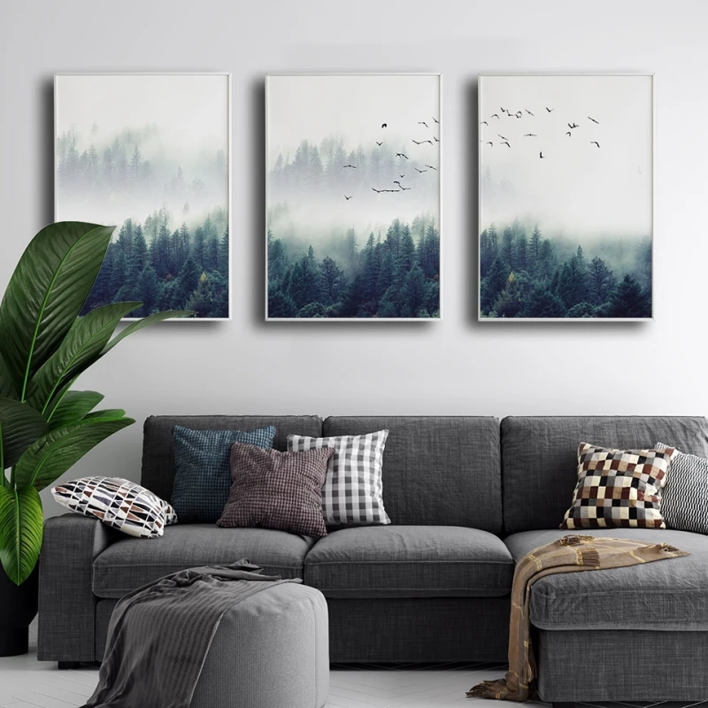 Скандинавский стиль, лес, пейзаж, постеры, настенное искусство, холст, картины на стену, скандинавский куадроз для гостиной, Декор без рамки