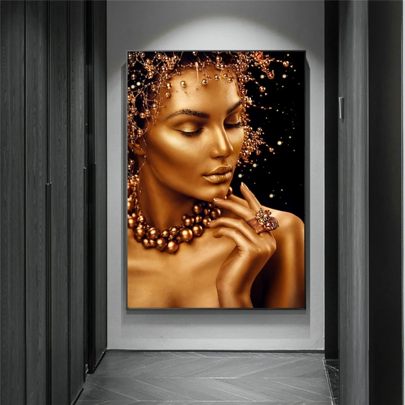 Африканская пикантная черная и Золотая женщина, искусство, картина ...
