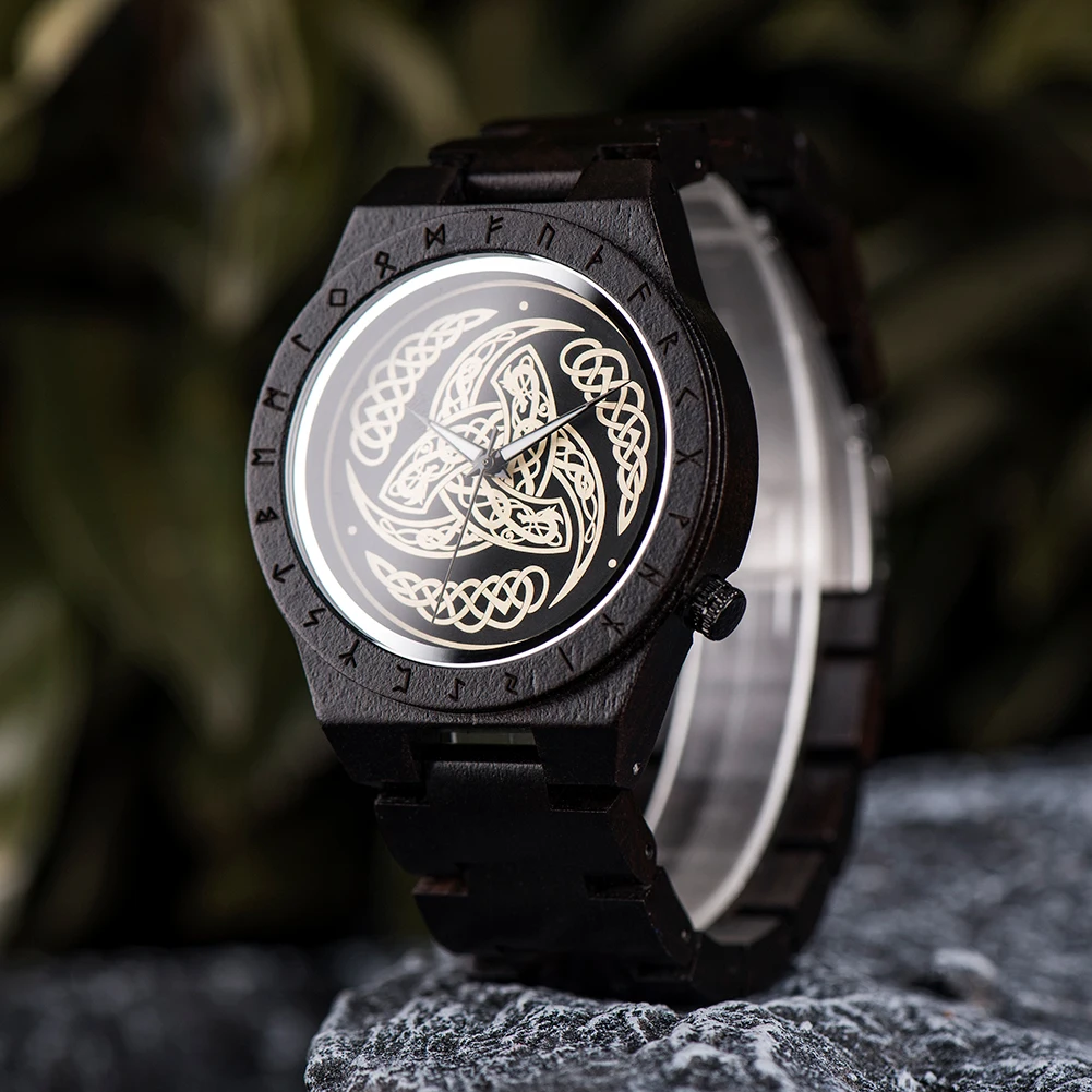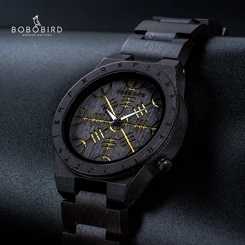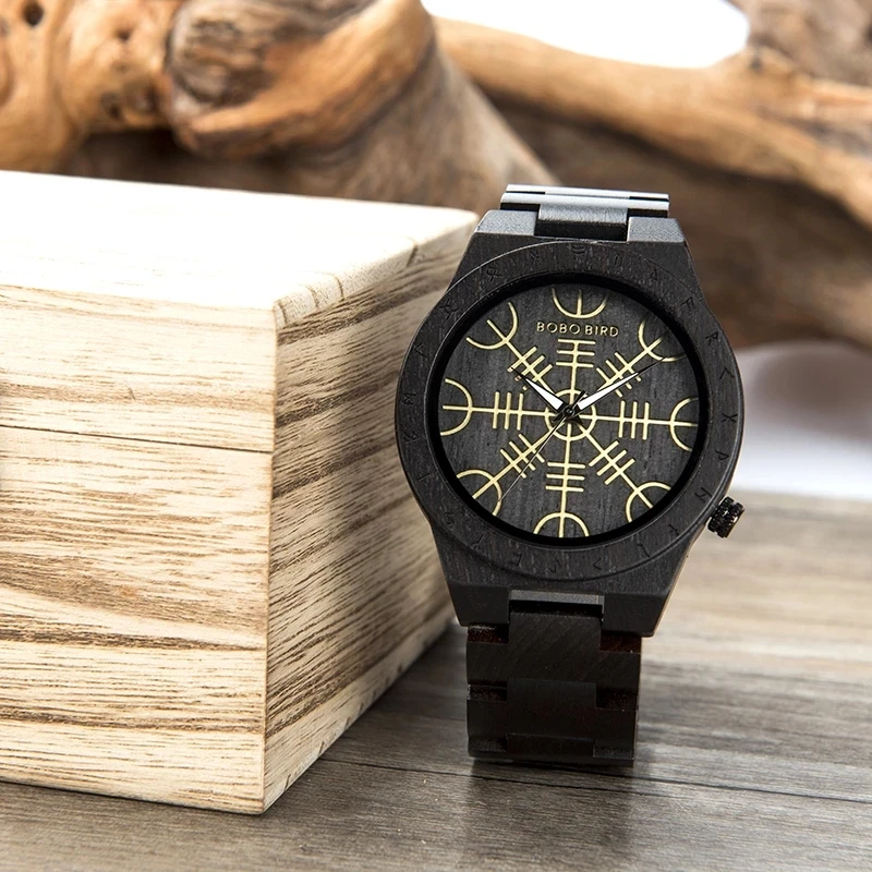 Часы наручные BOBO BIRD мужские с деревянным ремешком, роскошные Скандинавская руна с компасом, подарочная шкатулка из бамбука, 2021