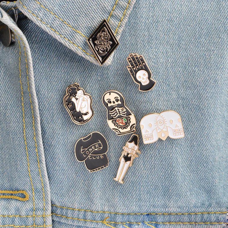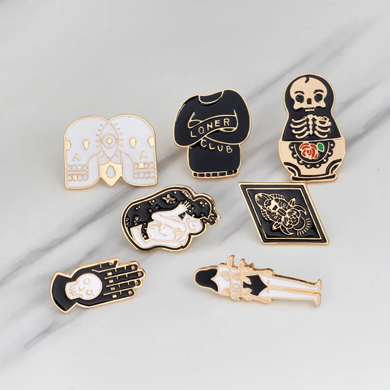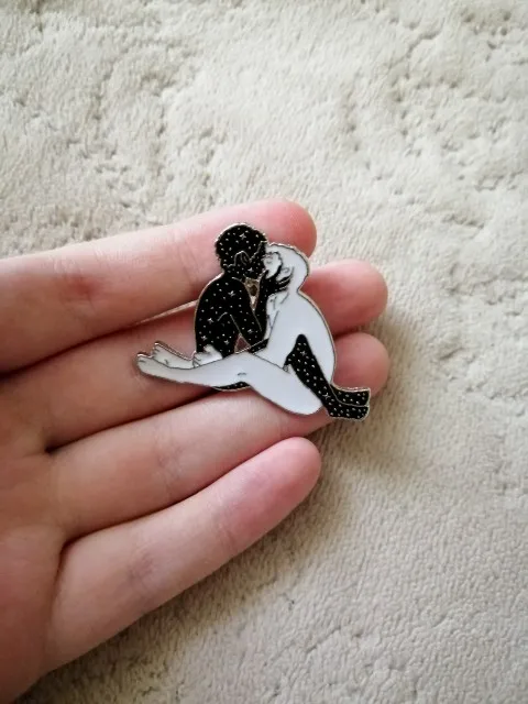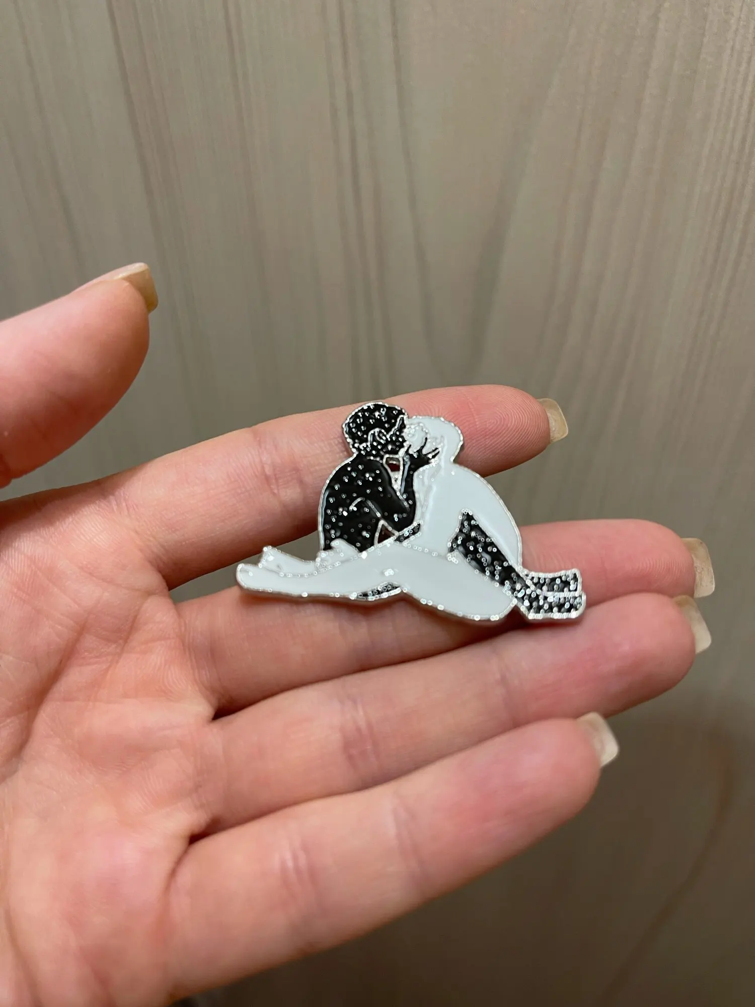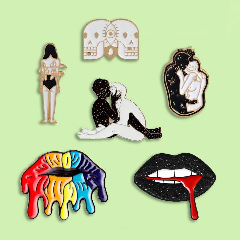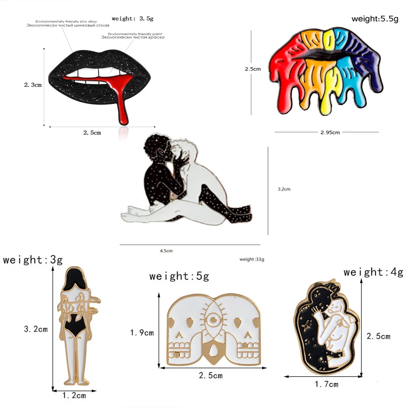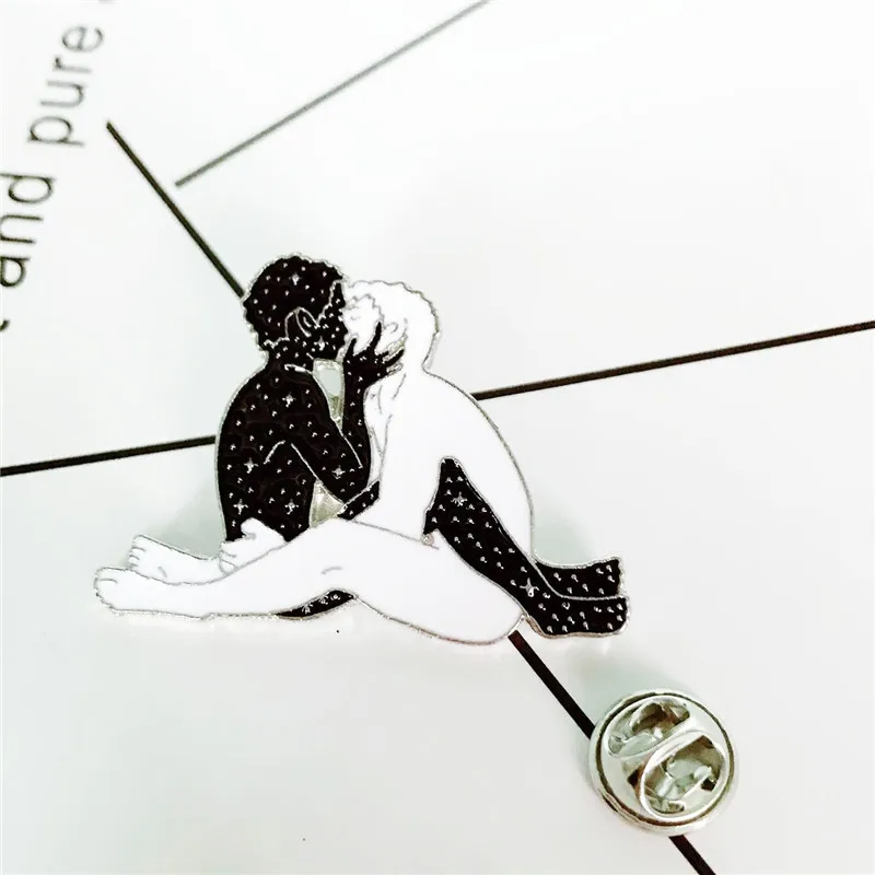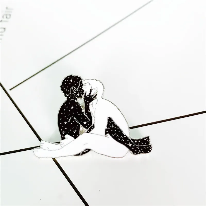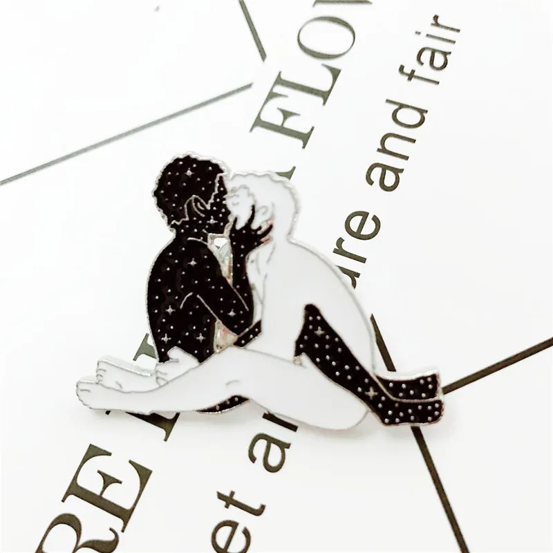 Черно-белые влюбленные поцелуй металлическая брошь с эмалью объятия Скелет Сексуальные губы значок булавка женский шарм Модная бижутерия подарок друзьям